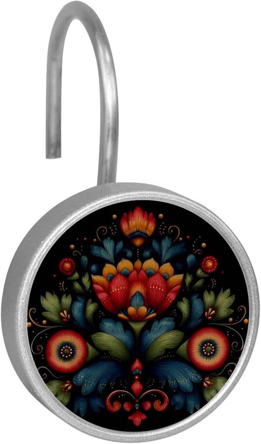 MATERIAL: glass, stainless steel. These shower curtain hooks can be decoration bathroom and will be long-lasting.12 pieces of shower curtain hooks, round crystal glass decoration, printed patterns, silver hooks to match various styles of bathroom shower curtains. SIZE: Crystal glass diameter of round shower curtain hook is 1.45x1.45in/ 3.7x3.7cm. The shower curtain hooks diameter is about 1.1in, 12 pieces shower curtain hooks are suitable for rod of 8-28mm(0.3"-1.1"). RUST RESISTANT:Shower hooks are made of stainless steel and crystal glass, which is durable, rust-proof and corrosion-resistant, it will not rust suitable for wet bathroom environment. EASY TO INSTALL:Hand the shower curtain hooks hold securely on straight or curved shower curtain rods,slid easily and smoothly. Easy to install and decorate your bathroom. BEAUTIFUL AND ELEGANT:Beautiful Love hook add charming scenery for your bathroom, baby room, bedroom, living room, and the gorgeous style is easy to match with any kinds of bathroom shower curtain. EASY GLIDE: Open and close your shower curtain quickly and easily with the Shower Hooks, easily glides on shower curtain rods and tension rods. No snagging; no effort; no hassle PACKAGE: 12 shower curtain hooks in a pack.The bathroom curtain hook has a smooth appearance and can be hung on the pole to pull it at will. Special price 12 sets to meet your needs.