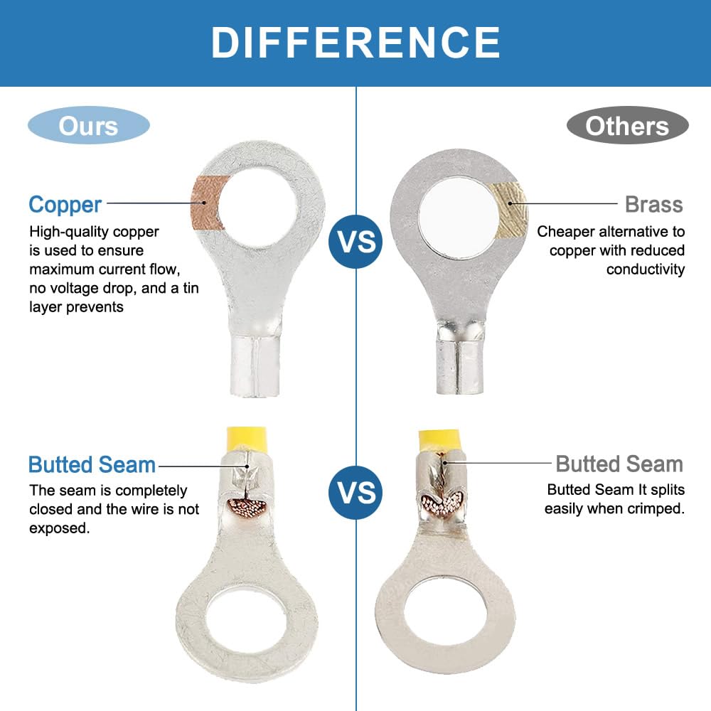• 【Premium Red Copper for Reliable Connections】 - Our heat shrink butt connectors are made with premium red copper, ensuring firm and secure crimping every time. This design minimizes voltage drop, supports high current flow, and reduces heat buildup, effectively preventing wiring failures and short circuits.