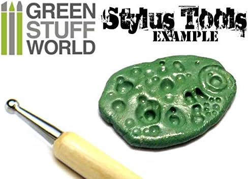Professional Metal BALL STYLUS toolset for Dotting and Sculpting Professional 8 burnisher toolset specially made for those who need extra fine detailing work. Each tool is made from high-grade stainless steel and crafted into a single robust wood handle with a precise ball on each end. Used for many applications such as Dotting, Shaping Putties, Sculpting organic forms, modeling clay, creating textures, and other applications like painting dots, or even writing. These are 16 different tips ranging from Large to superfine metal balls, allowing the creation of fine and intricate details from micropores, belt holes, straps on large scales to subtle wrinkles or small craters. The tool’s overall length is approximately 4-7/8 inches (13,5 cm in length). The largest tip has a diameter of 4.9 mm, the smallest is 0.6 mm.