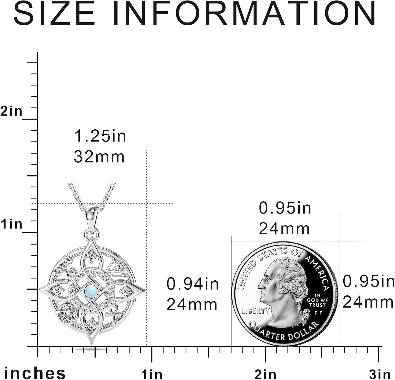 Embrace the magic of ancient wisdom with our 925 Sterling Silver Witch Knot Necklace with Moonstone. This mystical pendant brings together powerful Pagan and Wiccan symbols, offering protection, harmony, and spiritual guidance. Key Features: Moonstone Centerpiece – Enhances intuition, feminine energy, and spiritual growth. Witch Knot Design – A symbol of eternal protection and unity. Pentacle & Ankh – Representing balance, life, and sacred energy. Spirals & Elemental Triangles – Connecting the wearer with Earth’s natural forces. 925 Sterling Silver – Hypoallergenic, durable, and made to last. Whether you’re a practicing witch, a lover of crystals, or someone drawn to mystical beauty, this necklace is a spiritual amulet you can wear every day. Perfect for meditation, moon rituals, or as a meaningful gift for someone special.
