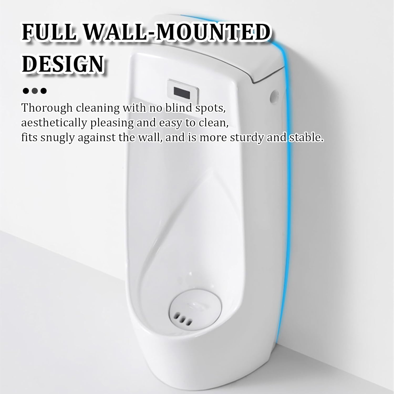 Commercial intelligent sensor flush male urinal with a white modern ceramic design, featuring a splash-proof structure and built-in functionality—hygienic, water-efficient, and ideal for bathrooms in hotels, shopping malls, and other commercial spaces.Product Name: Ceramic UrinalsProduct Dimensions: 98*41*33cm (38.6*16.1*13in)Product Features:Automatic sensor flushing design, which automatically detects the user's approach and departure, precisely controlling the flushing process. No manual operation is required, effectively avoiding hygiene risks associated with contact and enhancing the convenience and cleanliness of the automatic sensor urinal.Three-layer ceramic surface for easier cleaning and maintenance, with a smooth and bright finish.