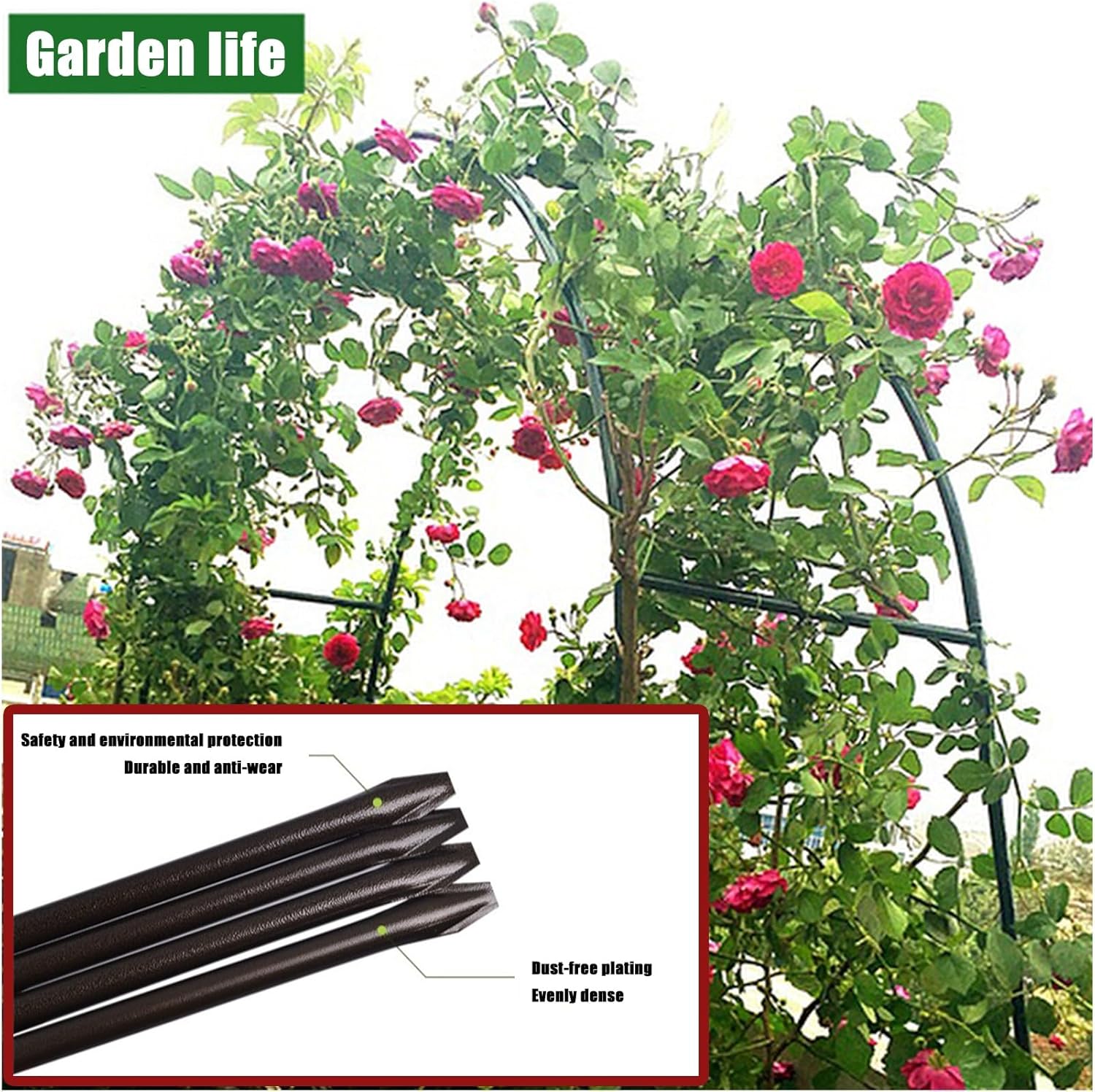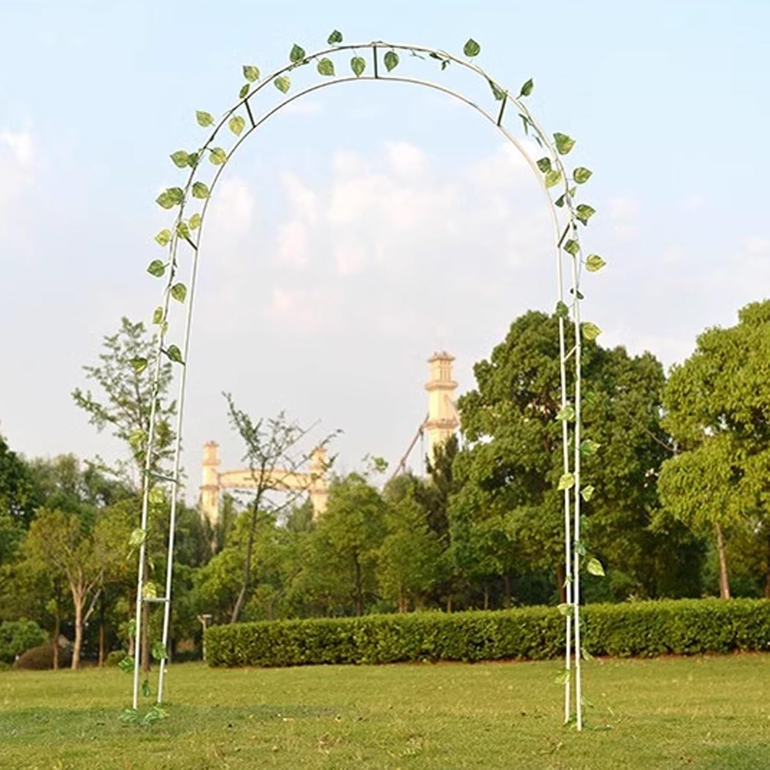Product features:* Deze hoogwaardige tuinboog is een perfecte keuze voor rozen en klimplanten en groenten om op te groeien en geeft ze de ondersteuning die ze nodig hebben om te groeien en te bloeien. Dit kan een blikvanger zijn voor je tuinterras of -terras als al je bloemen in bloei staan.Specification:Name: Decorative Garden ArchColor: White, GreenMaterial: IronPipe diameter: 19mmSize: (L x W x H)120cm X 220cm/47inx 86in,140cm x 230cm/55in x 90in,180cm X 220cm/70inx 86in,200cm X 230cm/78inx 90in,240cm x 220cm/94in x 86in,286cm X 220cm/112inx86in,300cm x 220cm/118inx86in,350cm x 220cm/137inx86inSide width: 40cm/15.7inNotice:* If a flower stand is used, it should be used in the current season. In the season when the flower stand is not needed, the flower stand can be removed and placed in a dry and ventilated place. Because it can prolong the service life of our flower stand.* Due to the manual measurement of the size, there may be an error of 1 to 3 cm. Please refer to the actual product. Thank you for your understanding.* Although we display the closest color possible, due to differences in computer monitors, there are likely to be some color variations.* If you have any questions, please contact us immediately and we will reply you within 24 hours.