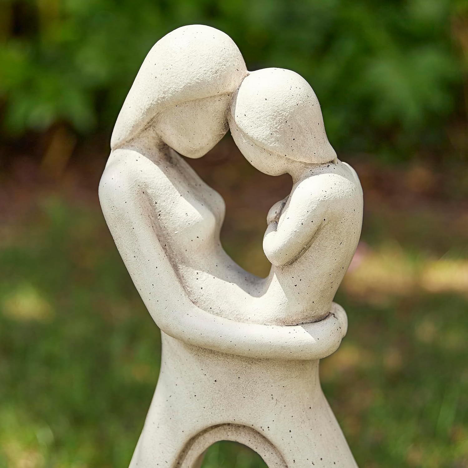 Sepecification:Item Material: 90% MGO, 10% FiberglassItem Size: 9.5 x 8.75 x 25.25in(LxWxH)Item Weight: 9.7lbsFeatures:1. This artistic bio-inspired sculpture featured with hand painted faux terrazzo finish looks elegant and high-end, which can blend in with different landscape to build a focal point and create a space filled with warmth and love.2. This modern abstract statue is sure a perfect addition to your garden, patio, backyard and also indoors, as well as a great gift for your family or friends!Package Includes:1 pc Hugging Mommy and Baby Statue