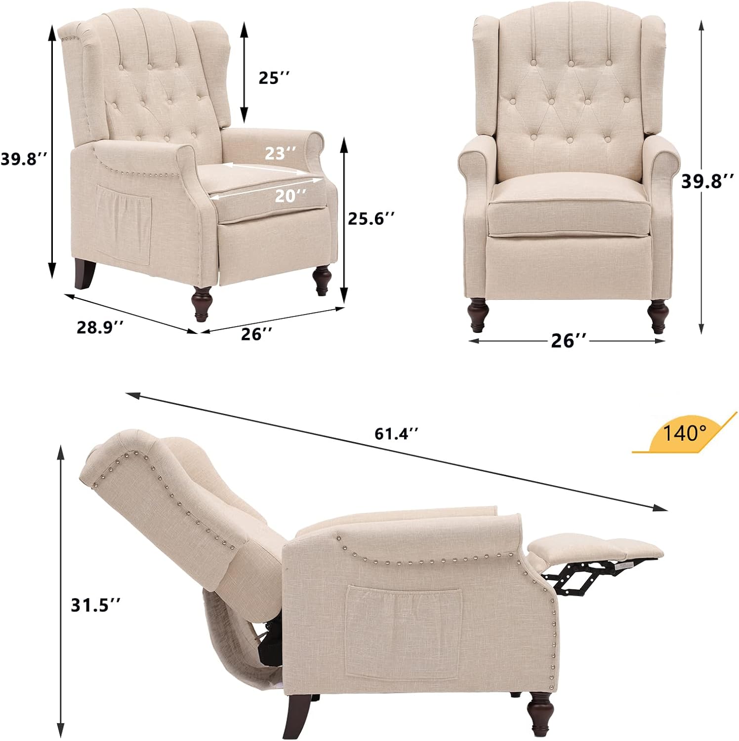 | Included Components | 1 X Instruction, 1 X Wingback Recliner Chair |