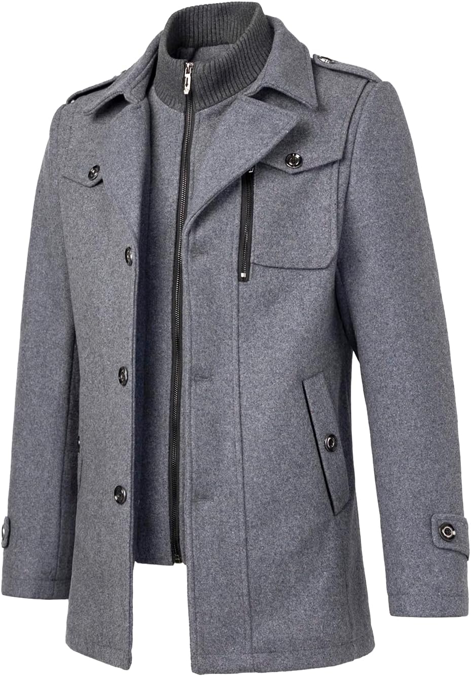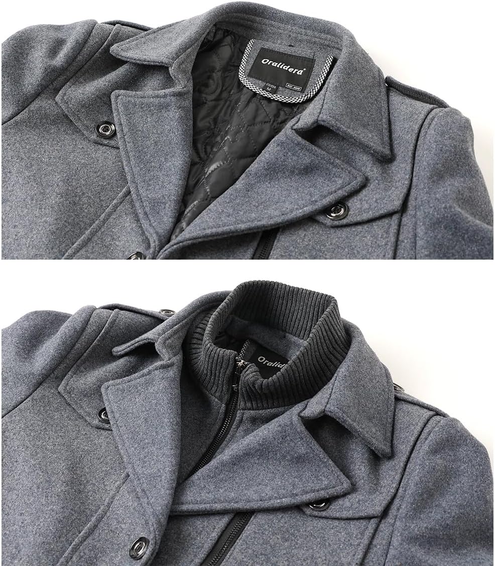 Mens Wool Blend Coat Business Single Breasted Windproof Warm Winter Peacoat
