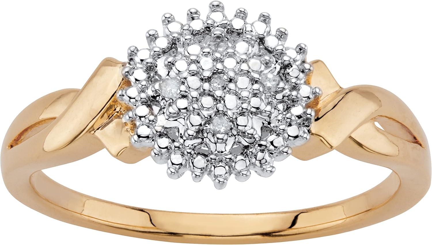 PalmBeach Jewelry exclusive. Designed to shine, this chic, round cluster button ring flaunts sparkling diamond accents and pave-styling. The crossover design adds extra dimension and fashion flair. Lavishly plated in 14k gold. Sizes 6-10. - 63238