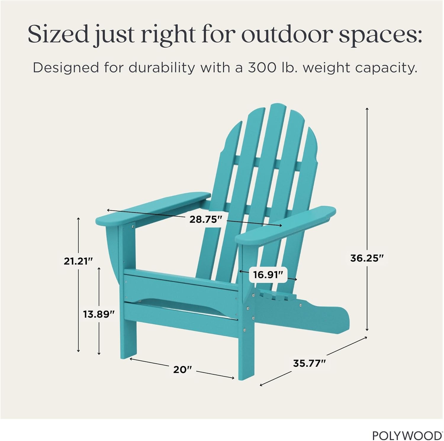 The POLYWOOD® Classic Folding Adirondack (AD5030) is a comfortable, stylish deck chair made from solid, heavy-duty, marine-grade HDPE POLYWOOD® to mimic the appearance of painted wood. cracking, chipping, and peeling. Weighing 34 lbs, this chair measures 29x35.75x35.75 inches and folds down for easy transportation and storage. Made in the USA, the Classic Folding Adirondack requires no staining, painting, or waterproofing and is available in a variety of different fade-resistant colors. The contoured chair pairs well with POLYWOOD’s OT53 Ottoman, XPWS0008 seat cushion, the XPWP0106 headrest pillow, and the XPWF0010 full cushion.