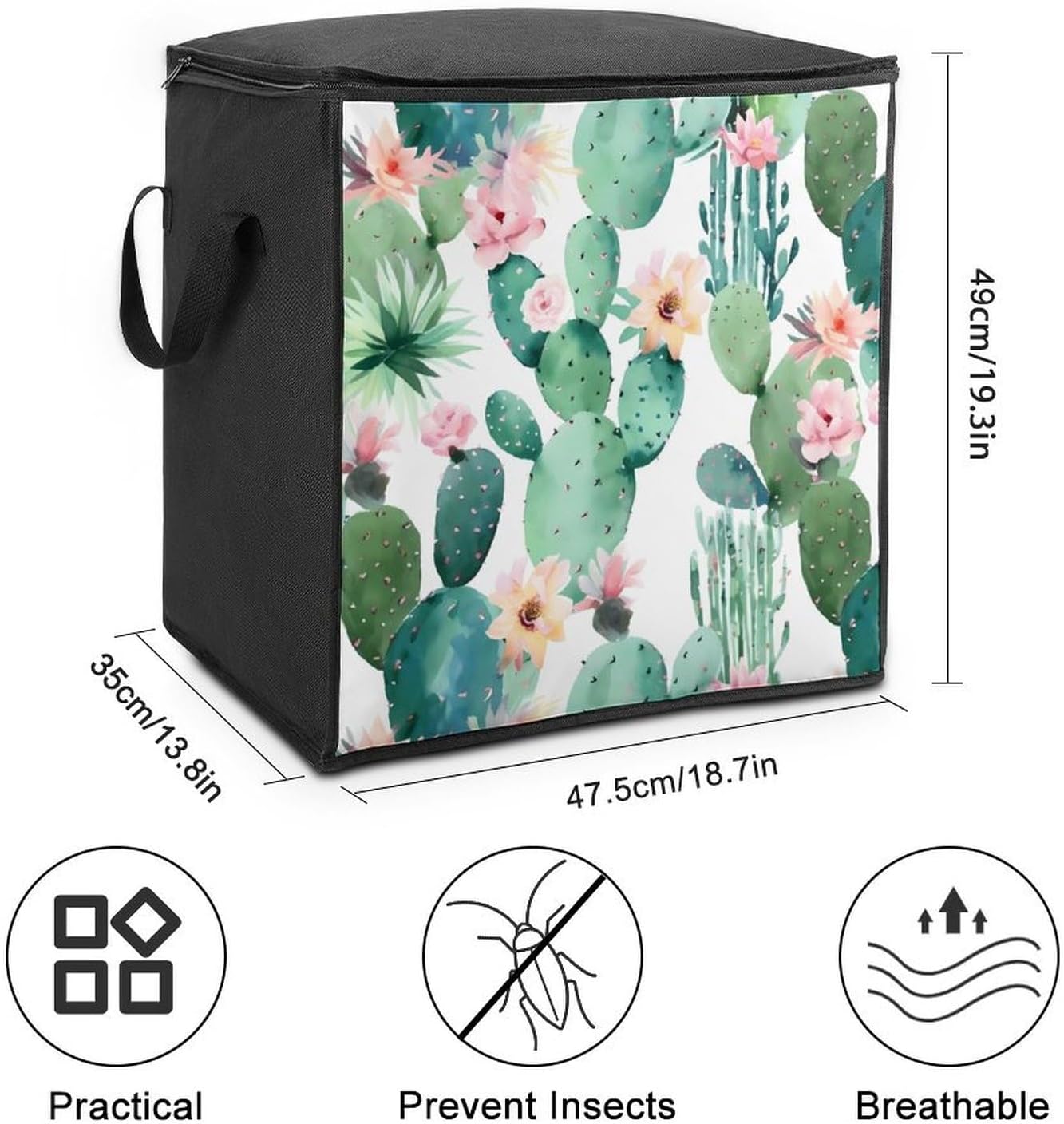 The Cactus Pattern printed Large quilt storage bag fit easily into closets or shelves, and are powerful enough to hold your daily items, protecting your stored items from moisture, dust and damage, keeping them fresh and clean Bedroom storage bags can also be used to store seasonal and Christmas decorations, making them a suitable Christmas gift for family and friends