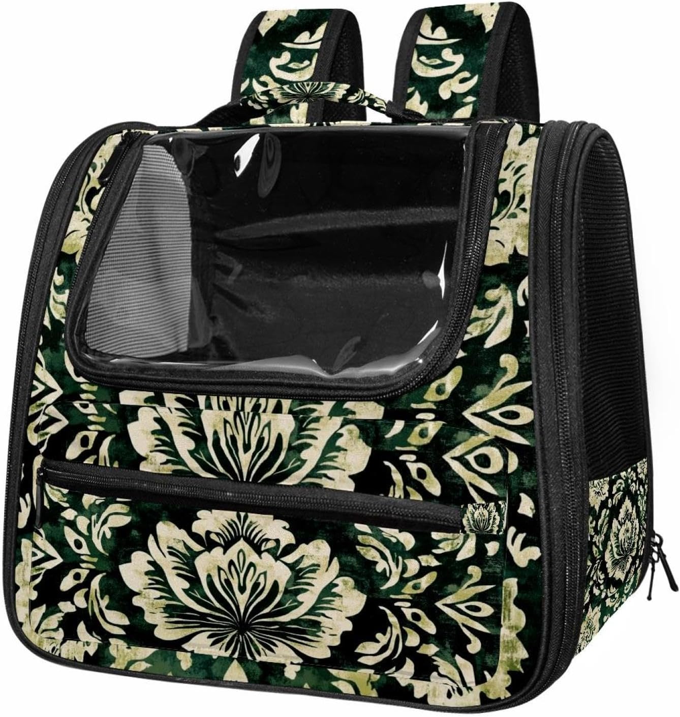 Well made: Cat Backpack Carrier is made from 900D oxford fabric, pp webbing, velvet, nylon, which is very sturdy, environmentally friendly and breathable. Not easily scratched by pet’s claws, pet backpack carrier is SAFETY & ANTI-SCRATCH. The back padding will give you a comfortable and breathable experience. Ventilated Backpack: With a breathable window in the front, this pet backpack allows cats to enjoy the sun without feeling stuffy. There are two side pockets and one big front pocket, and you can take foods or toy for your kitten pet. It is big enough for cat to turn around, and there are side pockets and hook holes, you will enjoy the greatest convenience when taking your cat out. Perfect size: Cat carrier is 15.75x9.84x13.78in/40x25x35cm. Fits most small/medium sized cat, dog, and pet. Quality fleece bed provide a comfortable place for your pet. Lightweight and easy to carry to all places. Built-in harnesses keep your naughty friends from escaping. Removable cosy mat for easier cleaning and let your pet enjoy it inside. Easy to carry: The adjustable shoulder strap of pet carrier bag help you hands-free carrying and makes it the most safe and convenient pet carrier bag for your travel. Seat belt design provide pets with safety protection throughout the trip. Pad protection keep your pets comfortable during travel. Unique Design: Innovative inside graphic design gives you a stereoscopic 3D visual experience. You also send us the photos you interest to make your unique dog or cat carrier. Pet bag is also a amazing gift for pet lover.