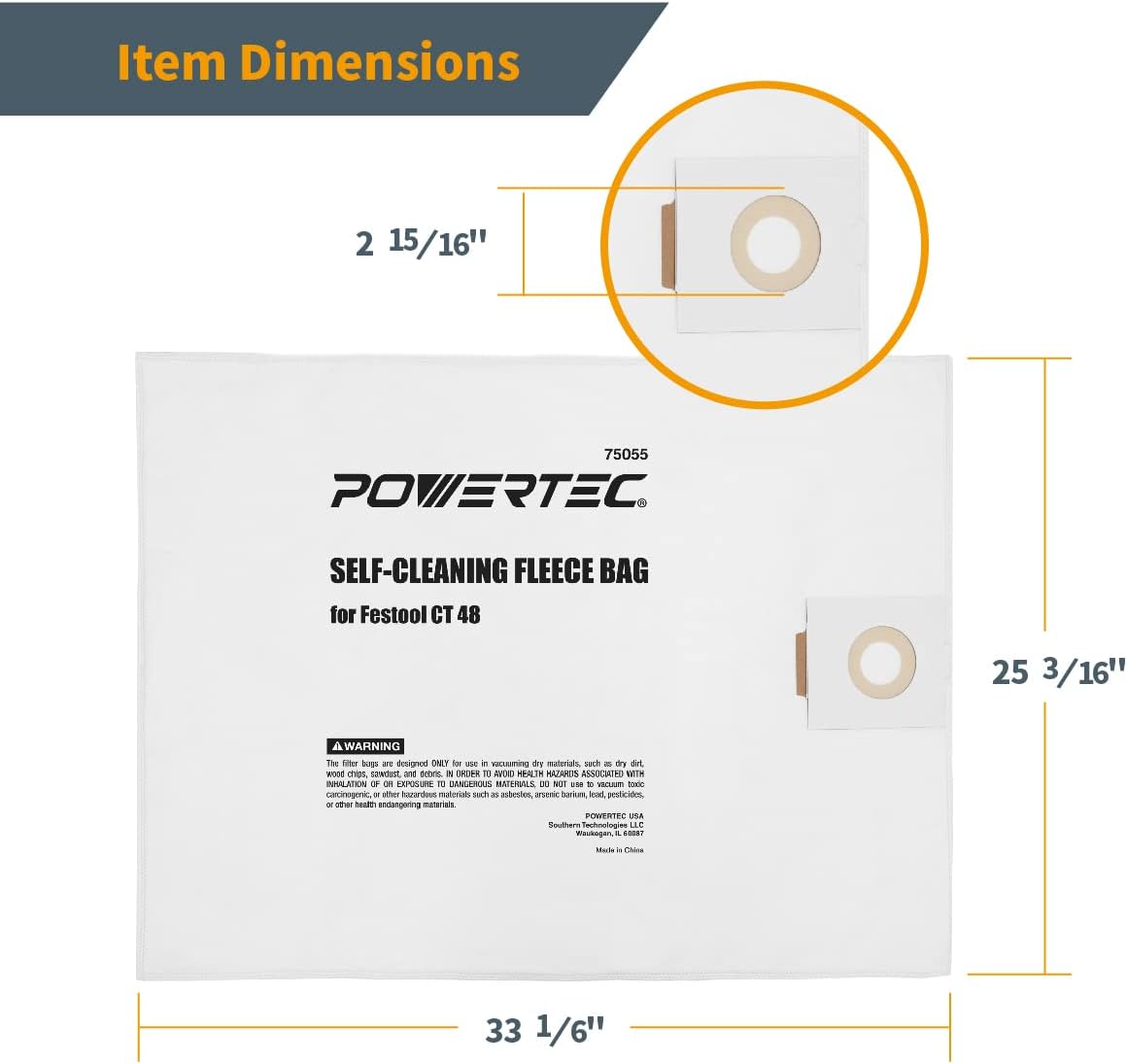 | Item Type Name | POWERTEC Shop Vacuum Bags 10PK for Festool CT 48 Dust Extractor, Replacement Fleece Filter Bags for Festool 497539 Shop Vacuum Dust Collection Bags, Shop Vacuum Accessories for Festool (75055-P2) |
