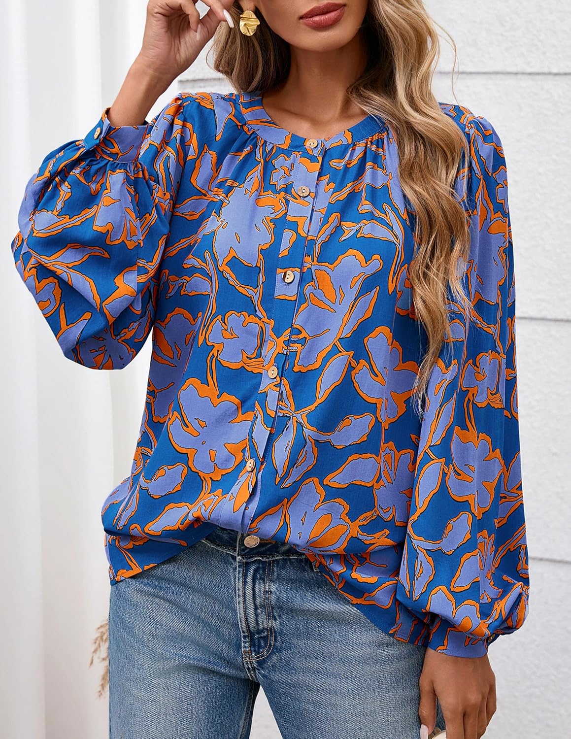 PRETTYGARDEN Women's Long Sleeve Button Down Blouse Casual Floral ShirtsLong balloon sleeves with gathered cuffs add dramatic volume and feminine flair to this versatile top.Stylish button-down blouse featuring vibrant floral print for an eye-catching feminine aesthetic.Lightweight fabric with a flowing silhouette suitable for year-round wear and easy layering.Classic button-front closure allows for adjustable styling, from fully buttoned to partially open.PRETTYGARDEN Women Fall Fashion Boho Clothes Casual Beach Vacation TopsThe relaxed silhouette features a subtly gathered back for effortless comfort and a flattering drape.Easy to accessorize with layered necklaces and bracelets to complete your fashion look.This floral blouse combines contemporary design with timeless appeal, making it a standout addition to any wardrobe.PRETTYGARDEN Women's Oversized Button Down Shirts Trendy Going Out TopsThe soft and lightweight viscose fabric drapes beautifully, creating a flowing silhouette.The hip-length relaxed silhouette provides unrestricted movement while maintaining a polished appearance.PRETTYGARDEN Womens Elegant Blouse Balloon Sleeve Button Up Bohemian ShirtsFashion Style: long sleeve/ floral print/ button down/ loose fit/ crew neckOccasions: This versatile piece works wonderfully for both casual outings and dressier occasions, weddings, date nights, office.Garment Care: machine wash or hand wash in cold water/ do not bleach/ hang to dry/ tumble dry lowPRETTYGARDEN Women's Dressy Date Night Outfits Holiday Birthday Party TopsPRETTYGARDEN Womens Blouse Dressy Casual Collarless Loose Fitting Tunic Topspink date night tops for women; blue long sleeve shirt women; rose red going out tops for women; orange boho tops for women; white blue floral blouses for women; black beach outfits for women