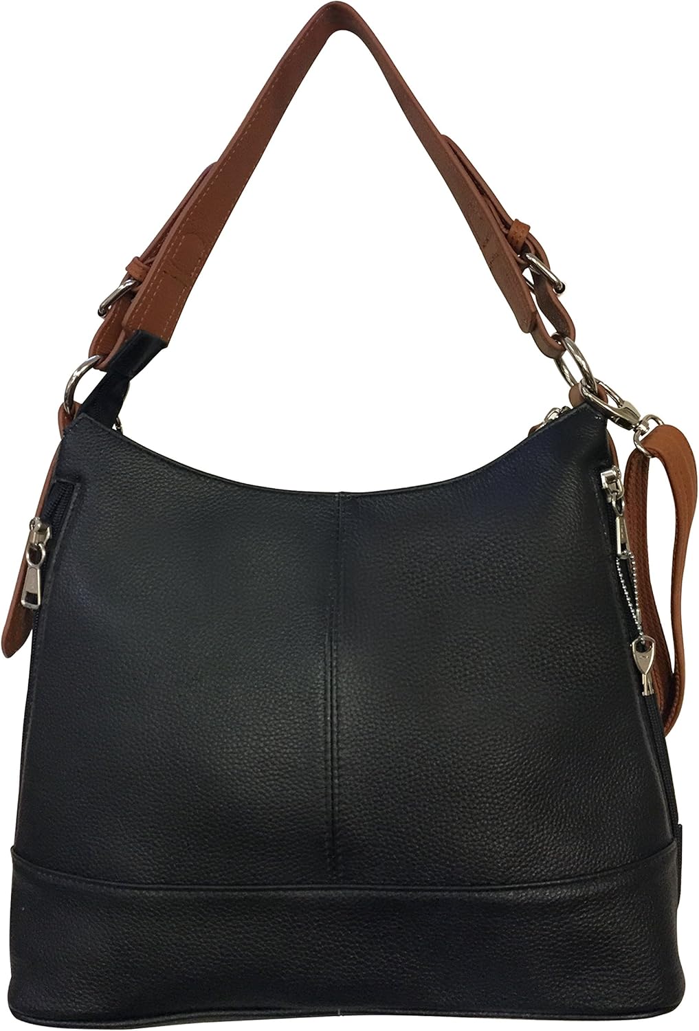 Looking and feeling good takes on a whole new meaning with the Ladies' Gun Concealment Crossbody Shoulder Bag from Roma Leathers! Protect yourself from possible physical attacks and carry your firearm responsibly with this bag that's created to a grant you a designated room for your weapon. It showcases an ergonomic construction that's designed to ensure safekeeping of a gun owner's tool. Made from durable cowhide leather, this innovative concealed carry storage features a sleek structure that's designed to complement any of your favorite outfits! Equipped with multiple interior pockets the spacious main compartment, this purse pack is a perfect carry-all bag for your gun and other valuables! This compact purse comes with a zippered front pocket that lets you stow trinkets and small valuables into its storage. The gun concealment is strategically placed on the rear of the bag to let you draw your weapon easily in times of emergency. The weapon holder is reinforced with a Velcro holster and a snap strap for secure placement. Available in classic Black, and elegant Navy colors. Get the Gun Concealment Crossbody Shoulder Bag in your preferred color and experience superior functionality with this stealth gear that combines stylish design and performance! Includes: 1 x crossbody shoulder bag