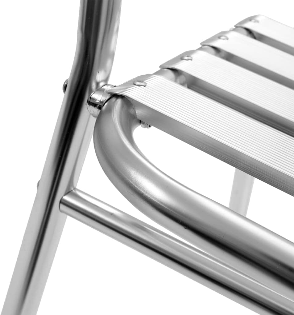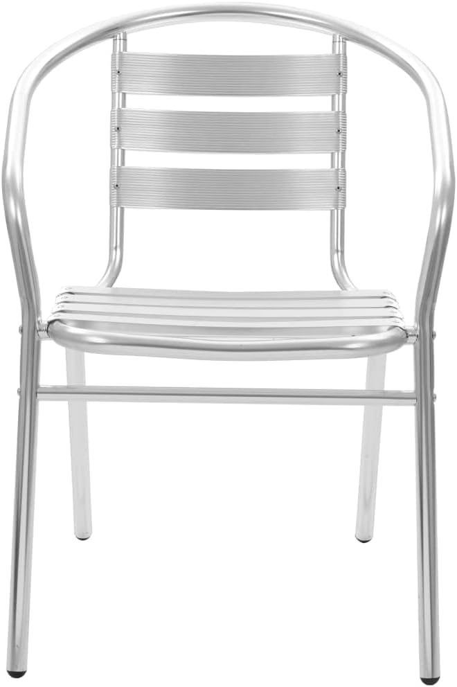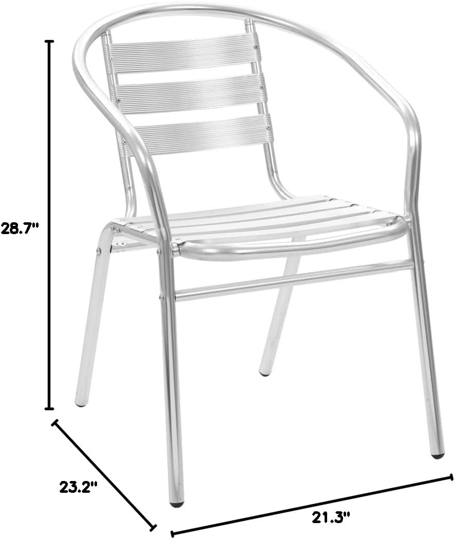 Our contemporary, stylish and functional chairs will be an absolute eye-catcher on your patio, or in your kitchen or dining room.Our chairs are made of high-quality aluminum, which will suit any decor. As they are made of aluminum, these metal chairs are sturdy, durable, and weatherproof, and thus suitable for outdoor use. They are designed to provide a comfortable seating experience. These chairs are stackable to save space when not in use. Our dining chairs are easy to assemble.Delivery includes 4 stackable chairs.Material: AluminumDimensions: 21.3" x 23.2" x 28.7" (W x D x H)Seat width: 17.3"Seat depth: 15.7"Seat height from the ground: 16.5"StackableDelivery includes 4 chairsMax. loading capacity: 242.5 lb