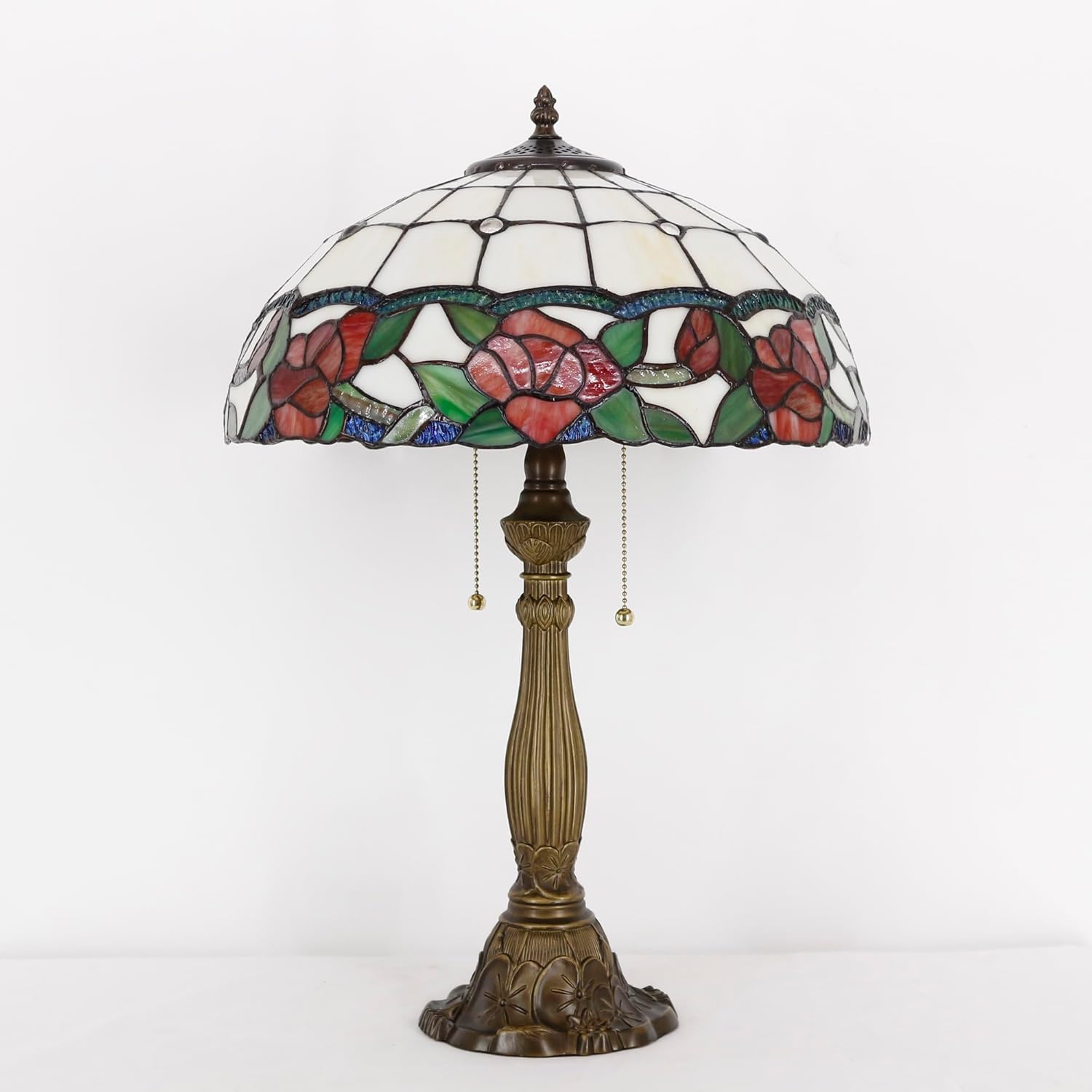 Tiffany Table Lamp Stained Glass Antique Desk Reading Light 16X16X24 Inches Decor Bedroom Living Room Home OfficeLamp Information: The tiffany lamp height 24 inch (60 cm), The lampshade width 16 inches (40 cm), Pull Chain Switch on 2 Light with UL listed, Resin base bronze finished , simple assembly. Bulb Suggestion: All bulb base in E26 can be use, LED G45/A15/A19 bulb is better, Max 60 W; Warm light bulb can get more beautiful color light, 2 light, (Bulb not included). Color of Glass: Stained glass is mix color, not uniform color , each two lamps will different in color. Oil on Surface: The new lampshade has been protected with mineral oil as part of the finishing process, Please use a soft dry cloth to remove any excess oil. Our Service: 24 hours services everyday, no matter what's the problem you meet, you can get help from us at any time.