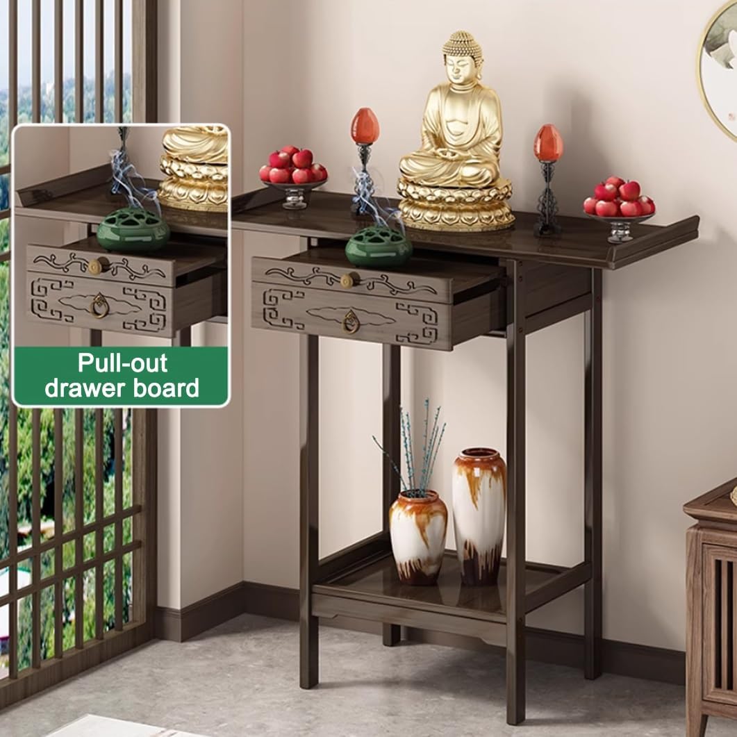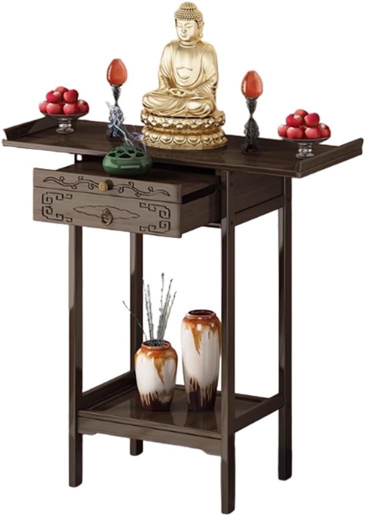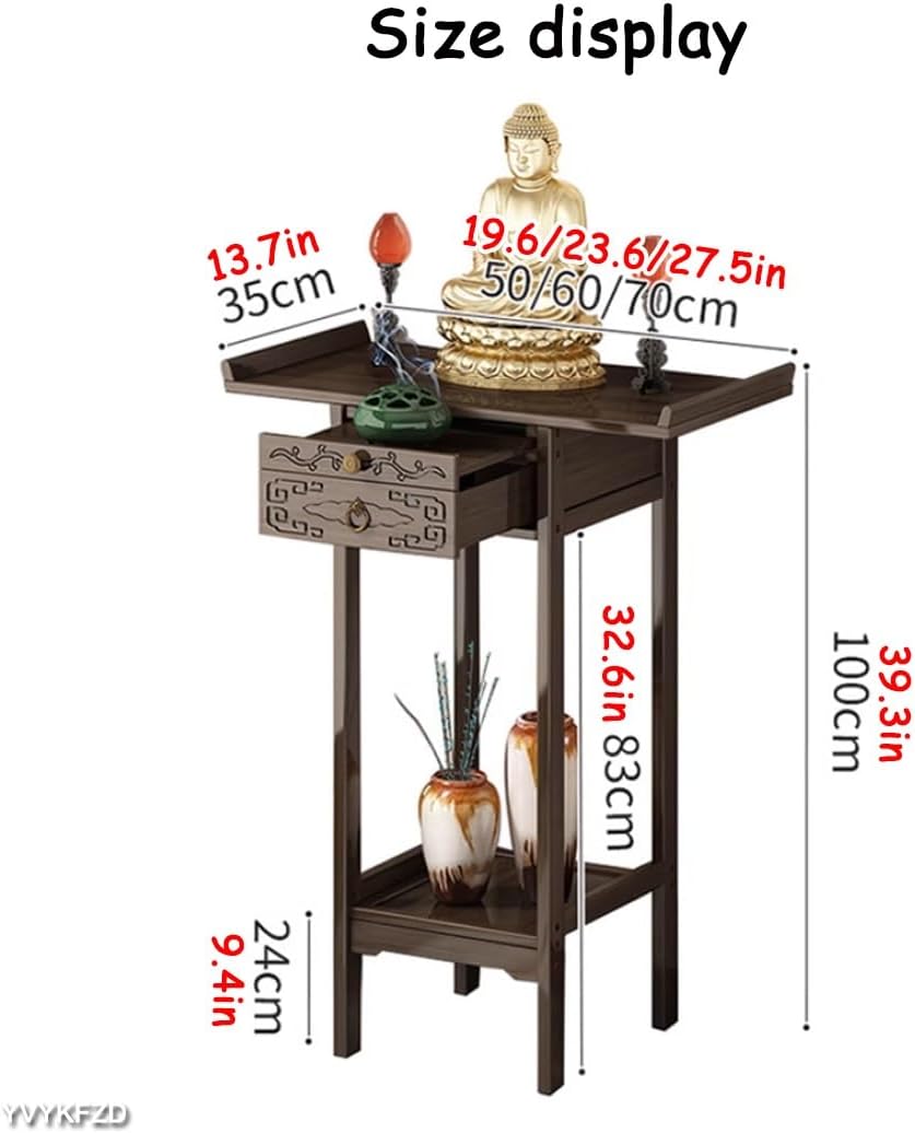 Welcome to YVYKFZD store:- Prayer table has a guardrail design to ensure that buddha statues, crystals, essential oils, incense candles, vases and any daily necessities or sacrificial items will not fall and shake, and stay safe- For wizards seeking a platform to perform their skills, this bamboo prayer table provides an excellent environment for your witchcraft practice. Pay tribute to the gods, hold rituals, or display your sacred tools and symbolsSpecification:● Name: Personal shrine altar table, meditation storage table, day of the dead altar stand, buddha statue offering table, pet ashes house pooja table, home incense table buddhist shrine prayer stand riser● Material: Bamboo● Color: Walnut● Size: 50x35x100cm/19.6"x13.7"x39.3", 60x35x100cm/23.6"x13.7"x39.3", 70x35x100cm/27.5"x13.7"x39.3", 100x35x100cm/39.3"x13.7"x39.3", 120x35x100cm/47.2"x13.7"x39.3"● Purpose: Can be used for prayer, incense burning, divination, offering, meditation, worship, ancestral hall, temple, worship, sacrificePackage Includes:1 * Personal Shrine Altar RackNote:1. Please check the size before buying. Due to manual measurement, an error of 0-3cm will occur. Hope for understanding2. The product photos do not contain items other than the product3. Please note that due to different monitors, there may be slight color difference, please understand