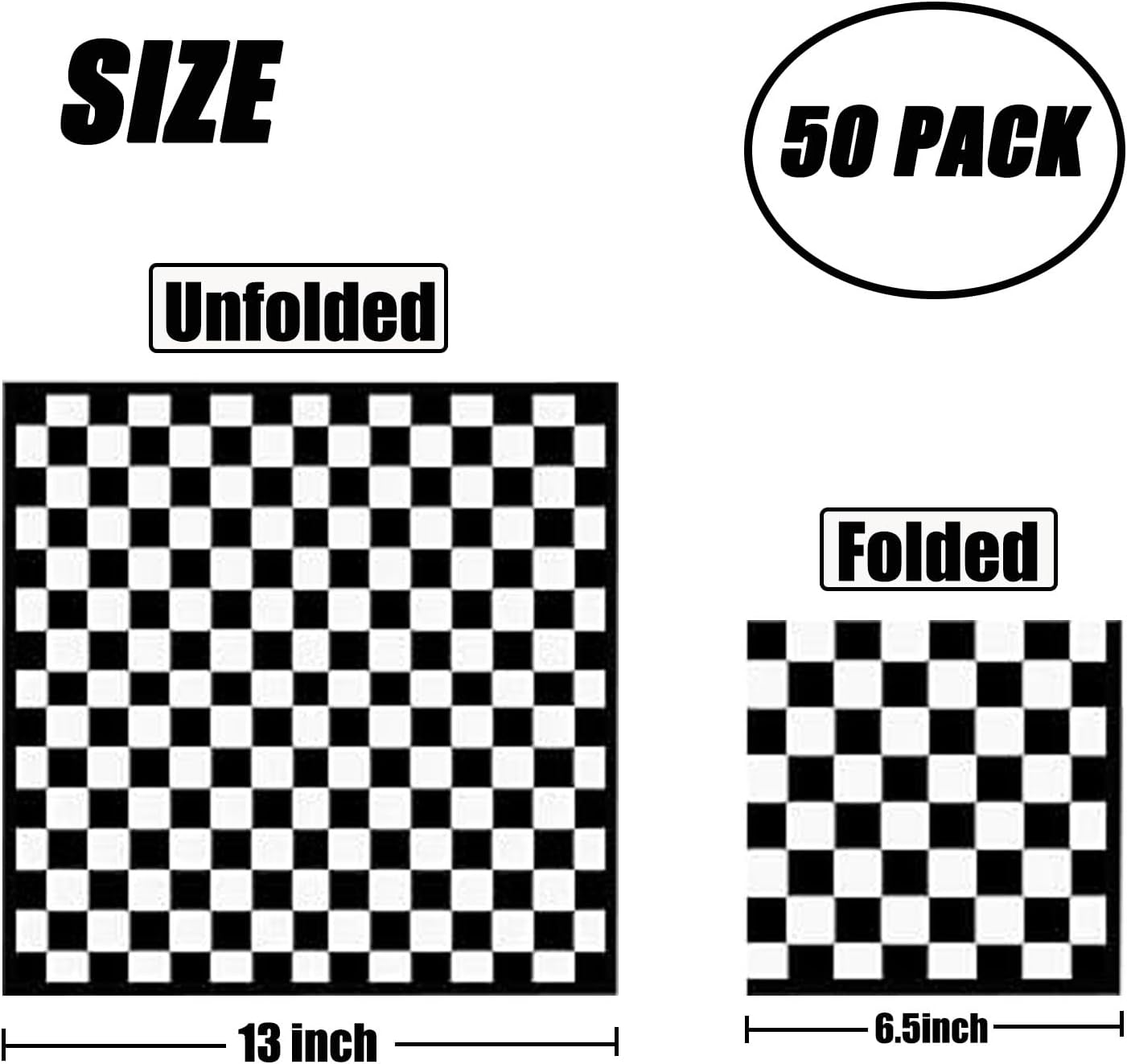 150 PCS Race Car Party Decorations :50 pcs checkered plates of 9", 50 pcs checkered plates of 7", 50 pcs checkered napkins