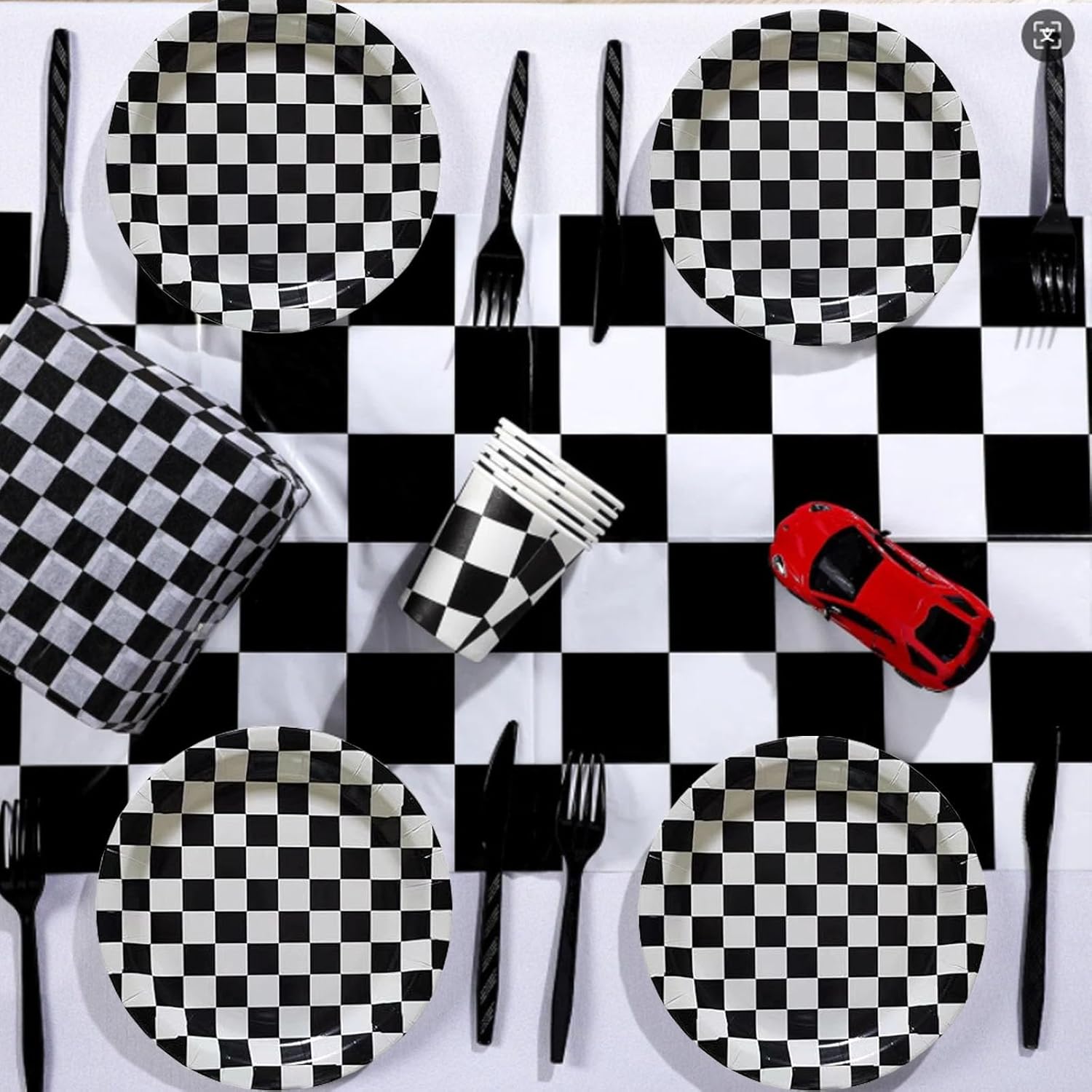 | Subject Character | Race Car Birthday Party Decorations, Checkered Birthday Decorations Party Supplies,Black and White Checkered Plates and Napkins |