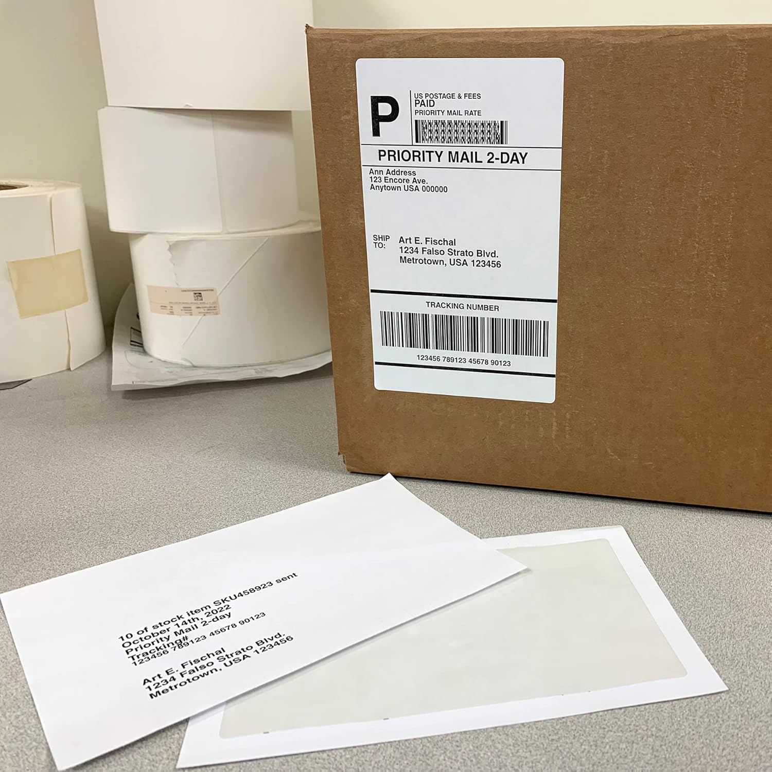 The integrated label with packing slip are perfect for shipping with eBay / PayPal! Now you can print your single order shipments on a single sheet containing only one shipping label with the tear away section being only plain paper. This is perfect the home based business that keeps copies of your shipping receipts. They can be used in laser, ink jet printers and copiers. These labels include our proprietary high tack permanent adhesive, 24# white multipurpose face paper, and our lay flat 35# silicone coated liner stock. These sheets are guaranteed to work in your laser and ink jet sheet printers and incorporate manufacturing technologies proven in the industry over the years.