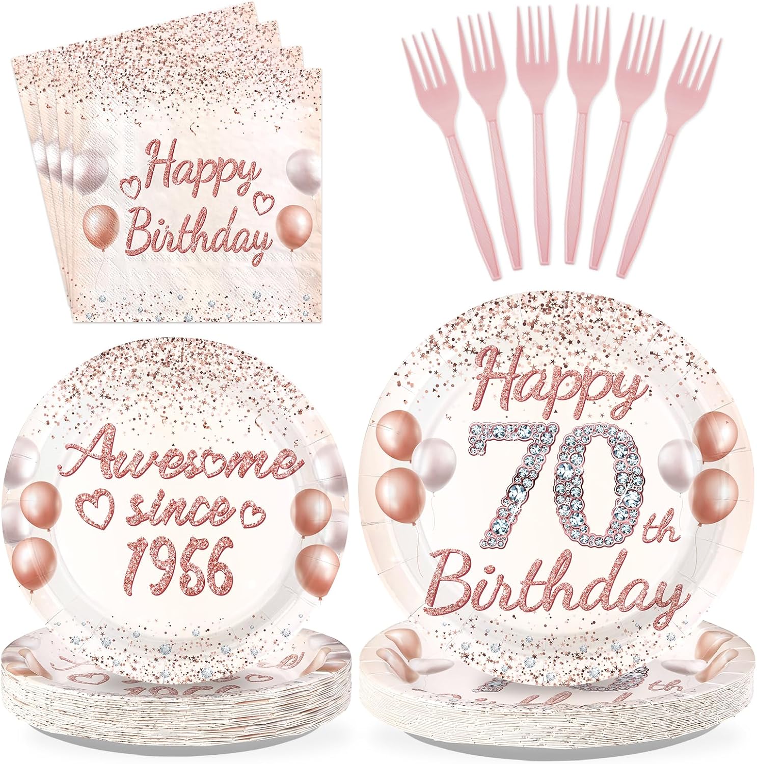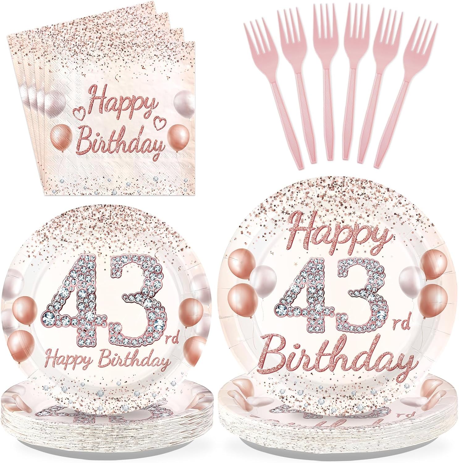 Greencian 96 Pcs 89th Birthday Party Supplies for Women Rose Gold 89 Years Old Paper Plates and Napkins Tableware Set Disposable 89th Birthday Decorations for Women 89 Years Old Party Serves 24