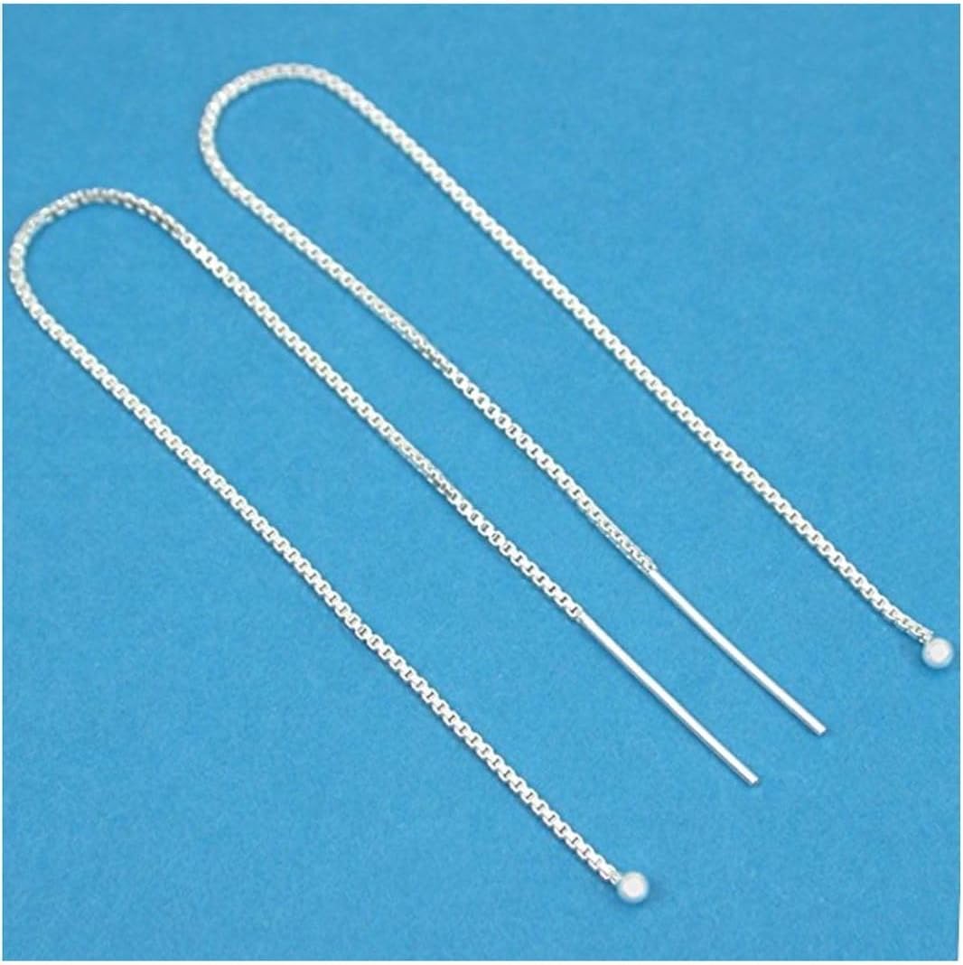 • (4pcs = 2 Pairs); Make a modern youthful statement with delicate sterling silver box-link chain threader earrings embellished with a cute tiny ball drop