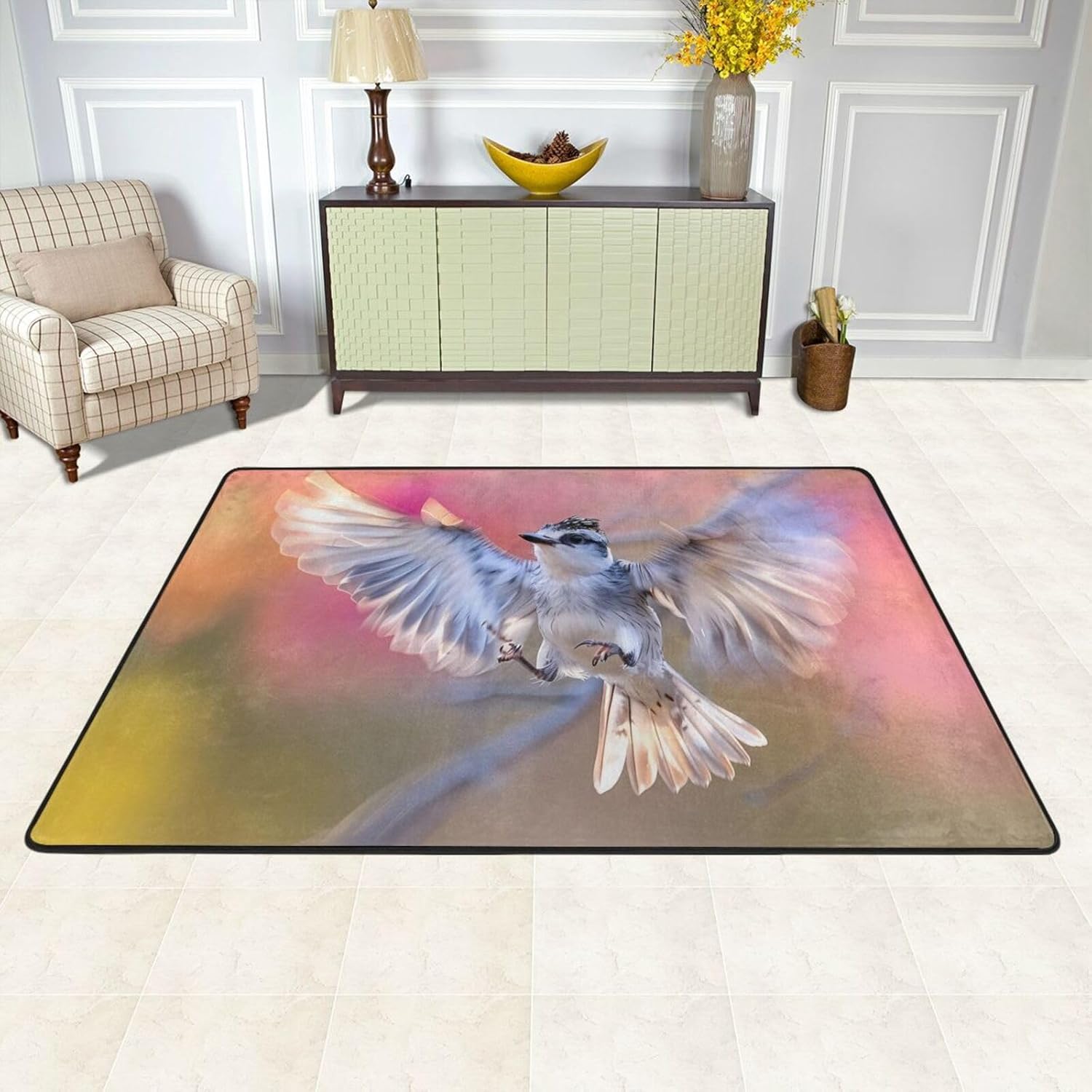 Transform your home with the exquisite WZYWHJ Bird in flight Printed flannel carpet floor mat 36"x24" . Crafted from high-quality flannel fabric (polyester), this carpet boasts a high density space elastic cotton interlayer that is not only absorbent but also incredibly soft to the touch. The delicate fluff texture adds a touch of luxury while ensuring no pilling or fading over time. The innovative middle layer features a high-density memory sponge that effectively relieves foot pressure, making it a comfortable choice for any room. Suitable for a wide range of scenarios including living rooms, offices, coffee tables, beds, and balconies, this carpet floor mat offers versatility and style. The bottom of the mat is made of non-woven fabric and plastic, providing an anti-slip and durable foundation. Easy to clean, wear-resistant, and lint-free, this WZYWHJ carpet is the perfect blend of comfort, functionality, and durability.