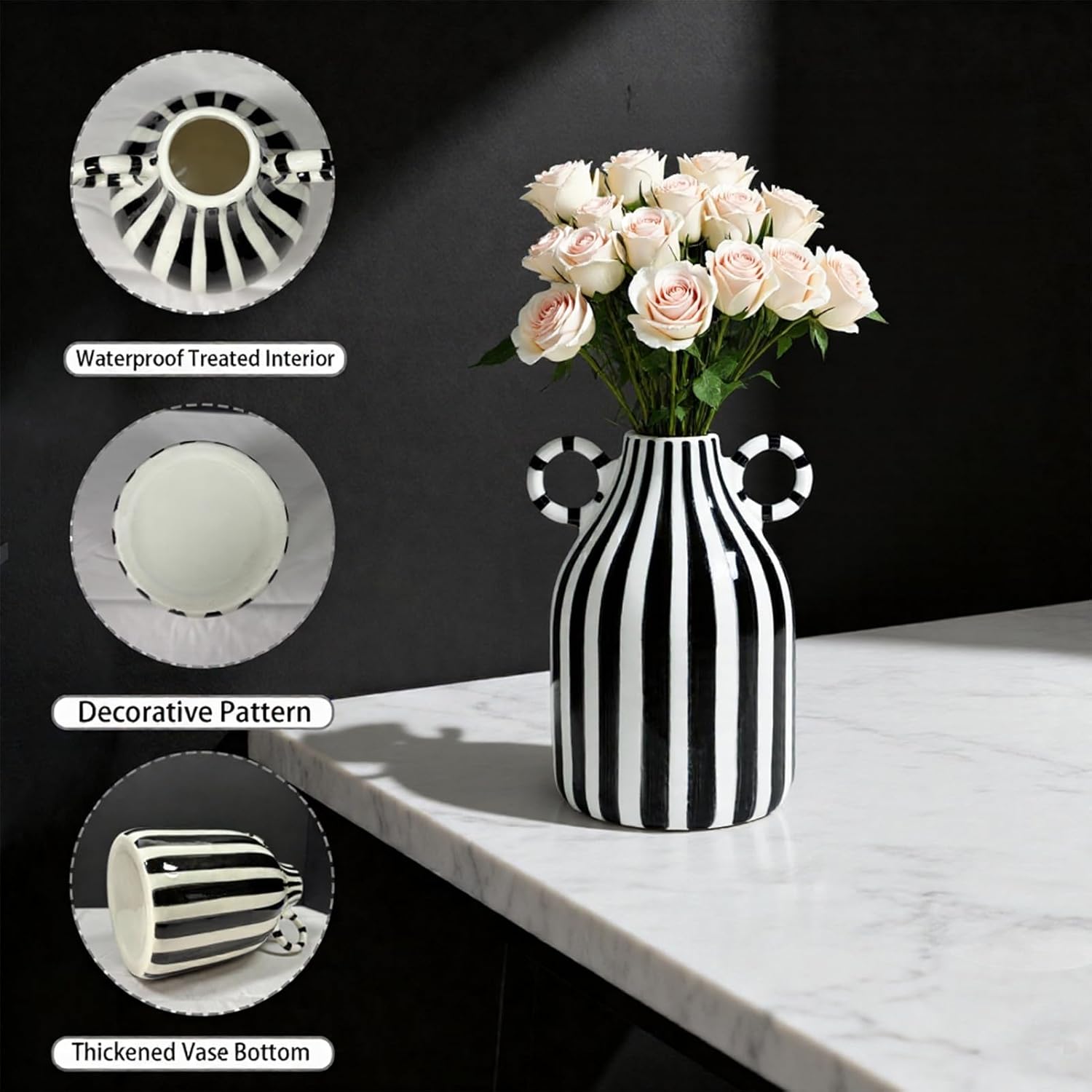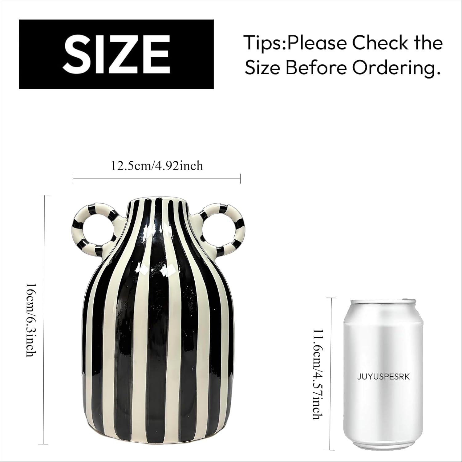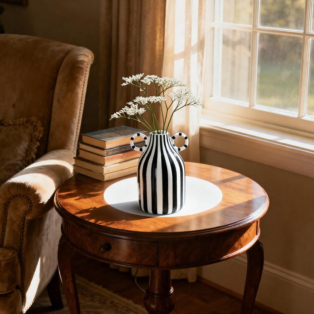 Black and White Striped Vase,Mid Century Hand-Painted Modern Ceramic Vase,Nordic Boho Vases, Black White Checkered Cute Flower Vases for Centerpiece,Living Room,Office,Home Decor