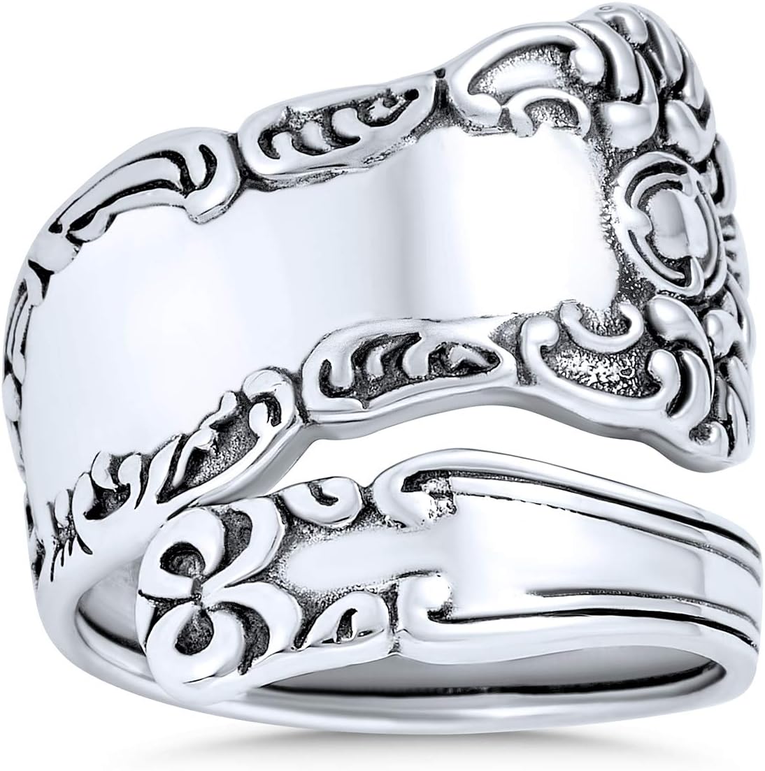 This quirky, eye-catching adjustable spoon ring fits most finger sizes comfortably. Realistic delicate trim makes it stand out. Antique-styled filigree detailing makes this sterling silver ring a must-have for trendsetters. Polished finish with oxidized detailing adds a stylish effect. A memorable silver fashion jewelry accessory. Perfect gift without worrying about the fit. Purchase for yourself or gift it today.