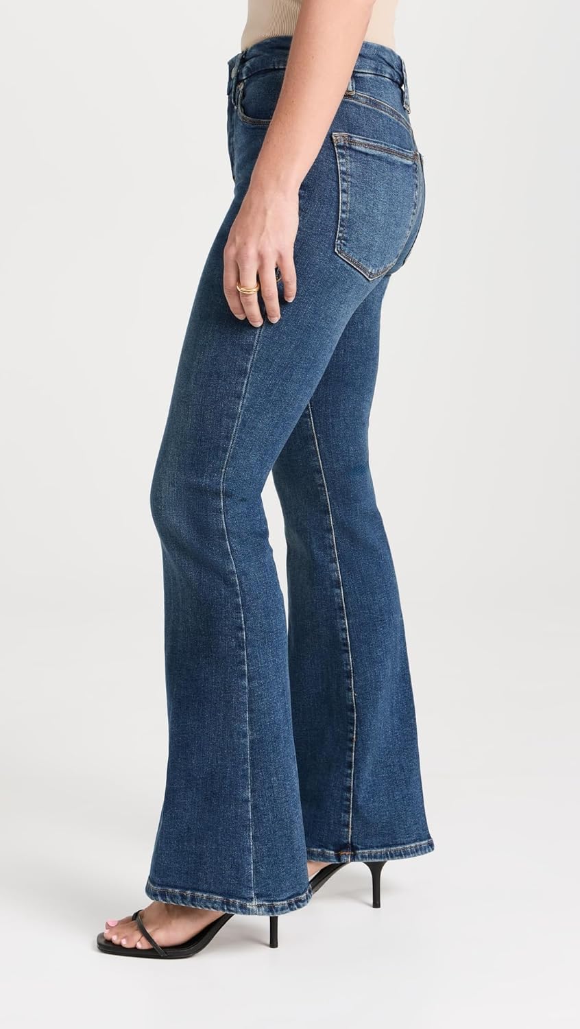 Ideal for women 5'4" and under, these jeans offer a stylish flared leg, a body-hugging fit with booty support, and a petite rise. They feature a high-recovery denim for all-day comfort, clean details, a five-pocket design, reinforced belt loops, and a gap-proof waistband in a dark blue wash. With an inseam of 30", they're made from 98.5% organic cotton and 1.5% elastane. Care instructions: machine wash cold, inside out, dry flat or hang dry. For more details, refer to our denim care guide. Model size 0 is 5'4" and wears size 0.
