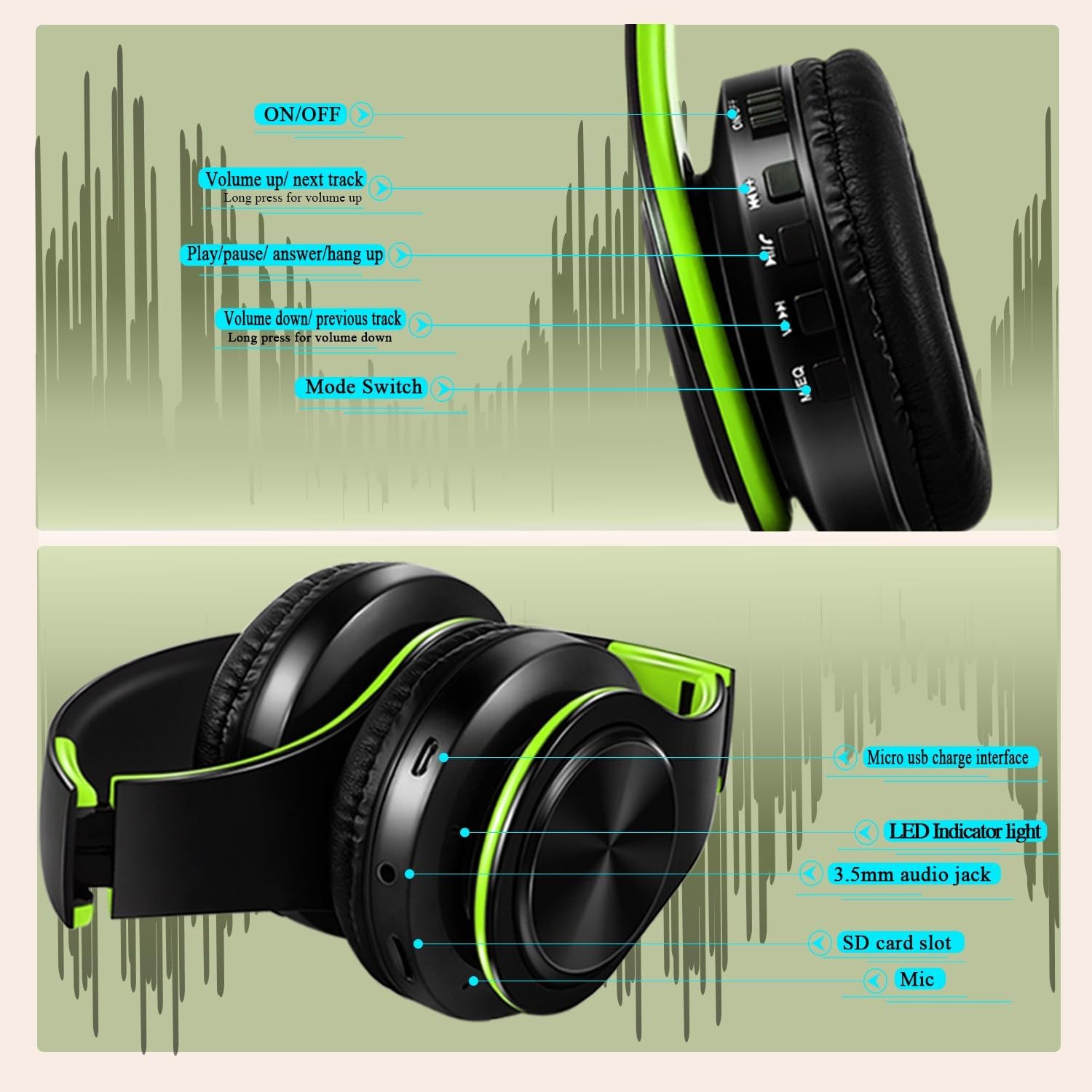 1)Bluetooth V5.0 version + MP3 function+ FM radio+ Wired playing support stereo music playing, phone calling...2) Support all audio devices that have Bluetooth capability, such as, cell phone ,tablet PC,laptop,computer etc. 3) 3.5mm audio jack, provides a simple wired connection of a variety of devices without Bluetooth. 4) Allow you to answer or reject phone calls anytime and anywhere. 5) Charged via USB, rechargeable battery, convenient and practical. 6) Playing time up to 20 hours, standby time up to 360 hours. 7) Good quality, foldable design and adjustable length hinges, very comfortable to wear and easy to carry. 8) Best choice for listening music, watching movie, chatting online etc. 9)With SD card insert,without any bluetooth device,can still enjoy music any time any where. 10)Cool shinnging outlook adds the fashionable feel.