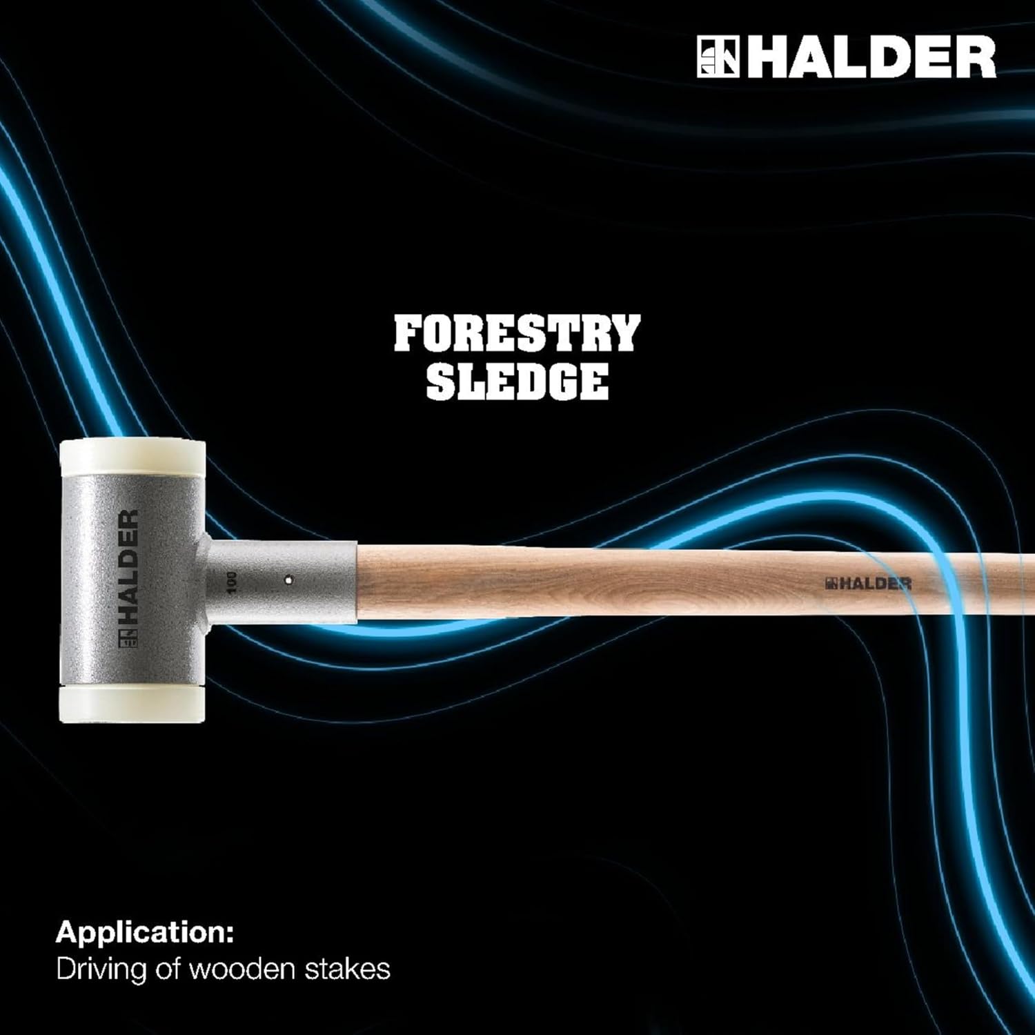 The Halder SuperCraft Forestry Sledge is a powerful Non-Rebound hammer designed for demanding outdoor and construction tasks. Featuring a tubular head filled with steel shot, it delivers maximum impact force with reduced rebound, minimizing joint strain and enhancing efficiency. Equipped with highly durable, replaceable nylon inserts, it ensures splinter–free, noise–dampening strikes ideal for driving wooden stakes without surface damage. The ergonomically shaped, long–fibre hickory handle is varnished for extra durability and grip comfort, while the robot–welded head and integrated handle protection sleeve ensure long–lasting performance. Perfect for forestry, landscaping, and structural work.