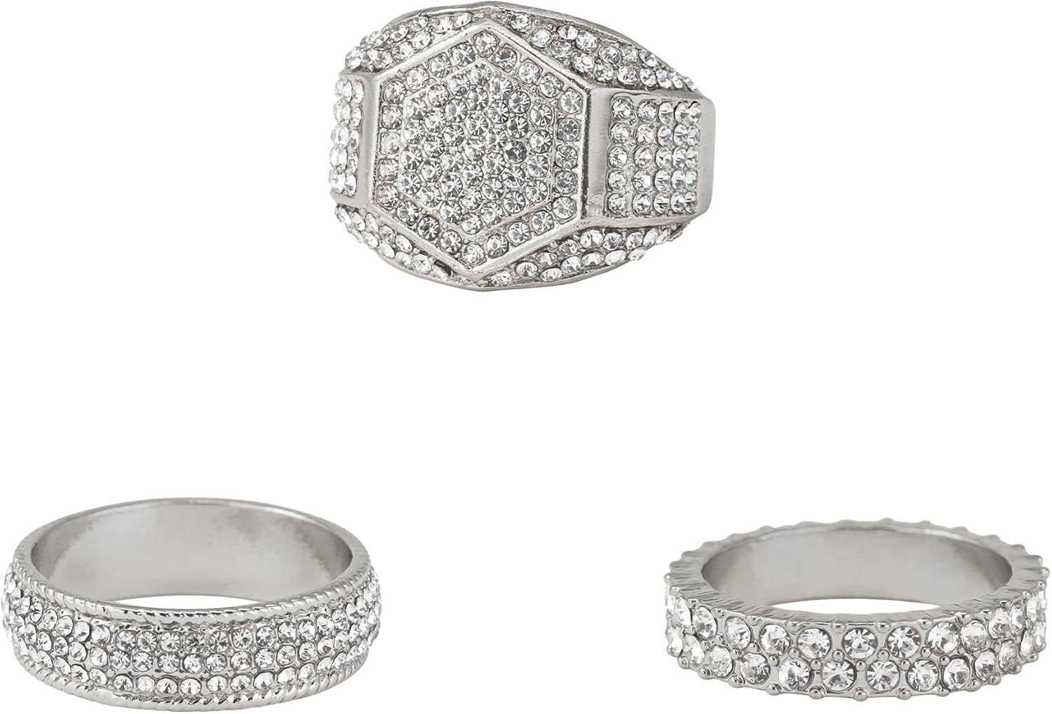 Upgrade your jewelry collection with our Men’s 3-Piece Iced Out Ring Set, designed for those who love hip hop style, luxury bling, and bold fashion statements. Each set includes two band rings and one heavy iced-out statement ring in your choice of Square, Hexagon, Crown, or Asymmetrical designs, available in gold or silver finishes. Made with durable alloy and fully covered in high-quality simulated diamonds, these rings deliver a luxury-inspired look without the price tag. Perfectly sized at men’s size 12, these rings can be worn together as a matching set or styled individually for different looks. Whether you’re upgrading your streetwear style, accessorizing for a night out, or gifting a loved one, this iced-out ring set is the ultimate way to add shine and personality to any outfit.