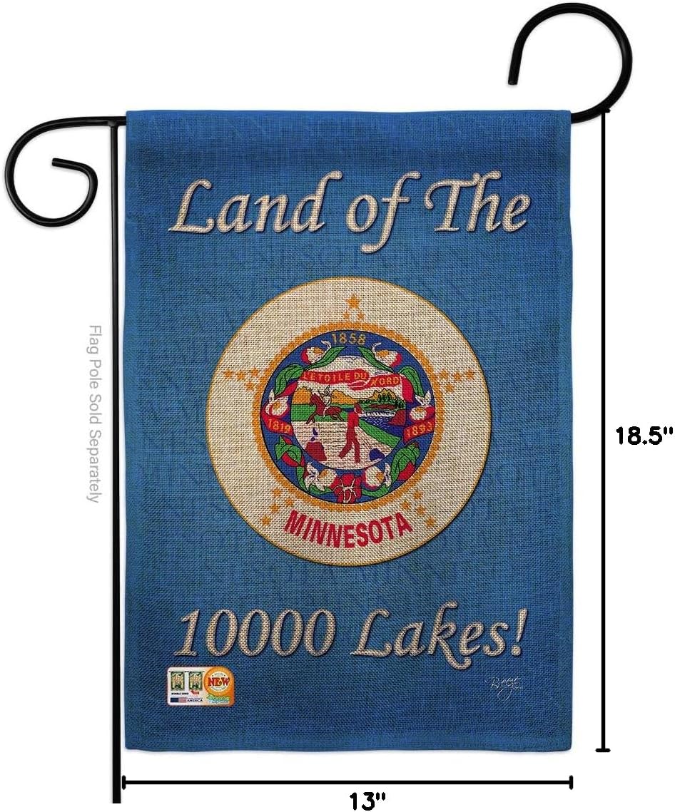 States Beautiful Mini Garden FlagBreeze Decor have variety of Garden Flag for all occasions. Uniquely design for hanging indoor or outdoor use. We are committed to offering you exceptional values. Our customers enjoy displaying our Garden Flag for longer periods. Specification: Theme: States Size: Garden Flag 13" x 18.5" Print: Double-Sided Readable: Readable Both Sides Material: Weather Resistant Double Burlap Stitching: Double Stitched Display: Vertical Hang Type: Sleeve Artist: Rick Bars Special Features: Origin: Made In USAPackage Include: 1 pc x Garden Flag 13" x 18.5" Package Decorative FlagsFor more than a decade, we’ve been dedicated to manufacturing flags with no comparison in quality and beautiful designs. Our flags are made with our Pro Guard material that is soft to the touch and designs can be read correctly on the flag. A feature that our customers will love. We are committed to using eco-friendly inks that won’t leave a foot print in our environment. MPN: BD-SS-G-108110-IP-DB-D-US13-BD 08110 58110