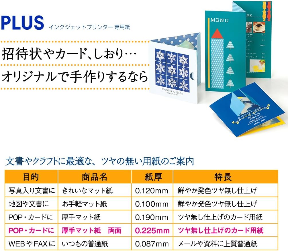 [Features] High quality matte coated paper optimized for inkjet printer printing Can represent the original ink color. Moderate thickness and resilience make it perfect for processing.