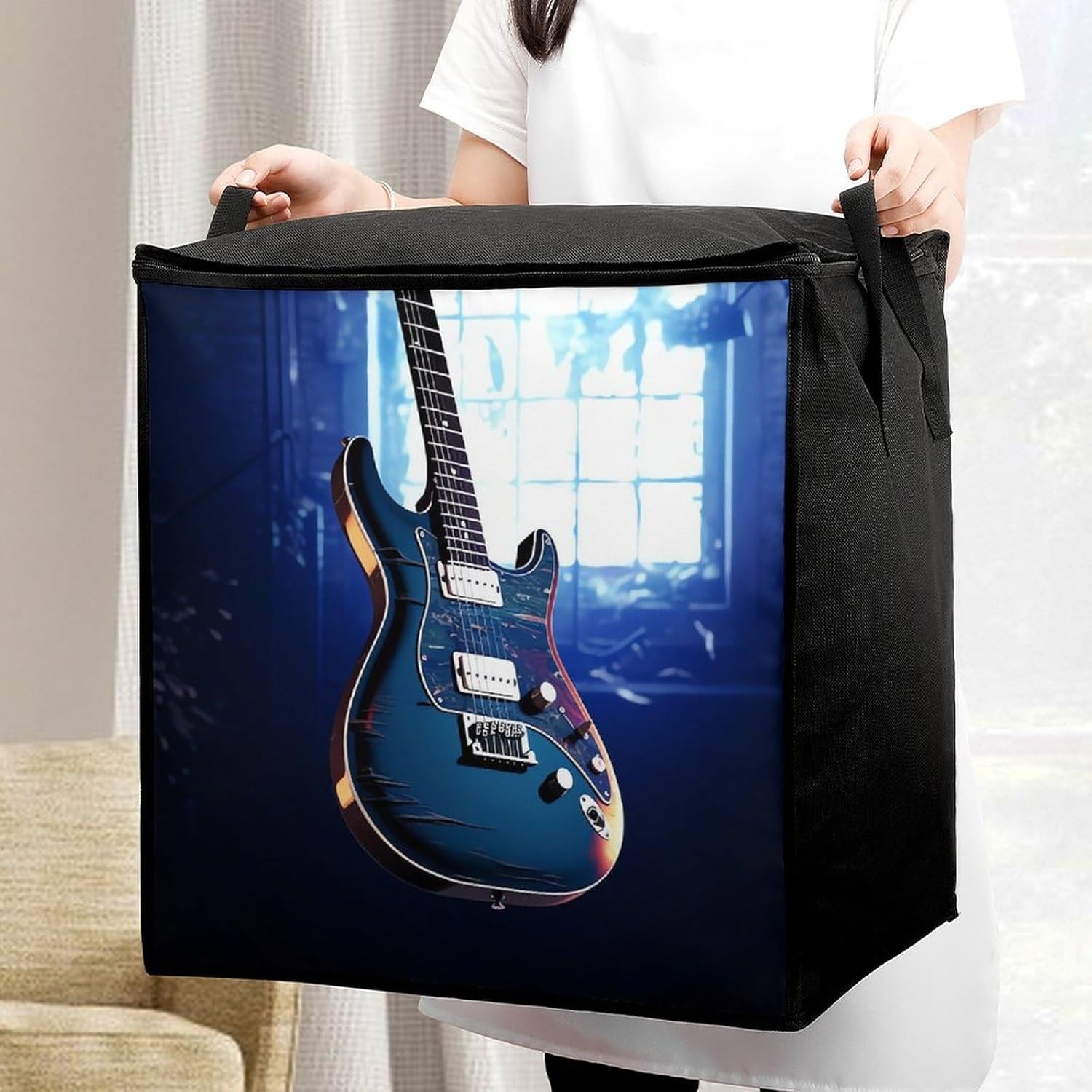 The Blue Guitar printed Large quilt storage bag fit easily into closets or shelves, and are powerful enough to hold your daily items, protecting your stored items from moisture, dust and damage, keeping them fresh and clean Bedroom storage bags can also be used to store seasonal and Christmas decorations, making them a suitable Christmas gift for family and friends