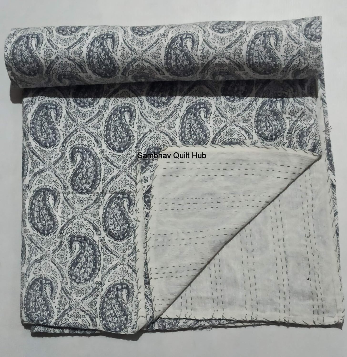 Handmade Handblock Print kantha quilt.made with 100% cotton. It can be use as a bed cover,bedspread,quilt,wall decor,picnic&beach throw etc. Kantha is still the most popular form of embroidery practiced by rural women.typically use saris and cloth and layer them with kantha stitch to make a light blanket, throw or bedspread. These cotton lightweight "Quilts" with a beautiful and colorful Floral design can be used as: 1. Bedspread , Bedding Throw , Blanket Or Quilt 2. A Summer Bed Cover 3. A Fabulous Picnic Rug 4. Nice Bedroom Quilt , This can fit to a 90 x 108 inch's King size bed as blanket or throw or can easily fit as bedspread / bed cover to King bed . Washing Instruction – Easy To Hand Wash & Dry Clean.