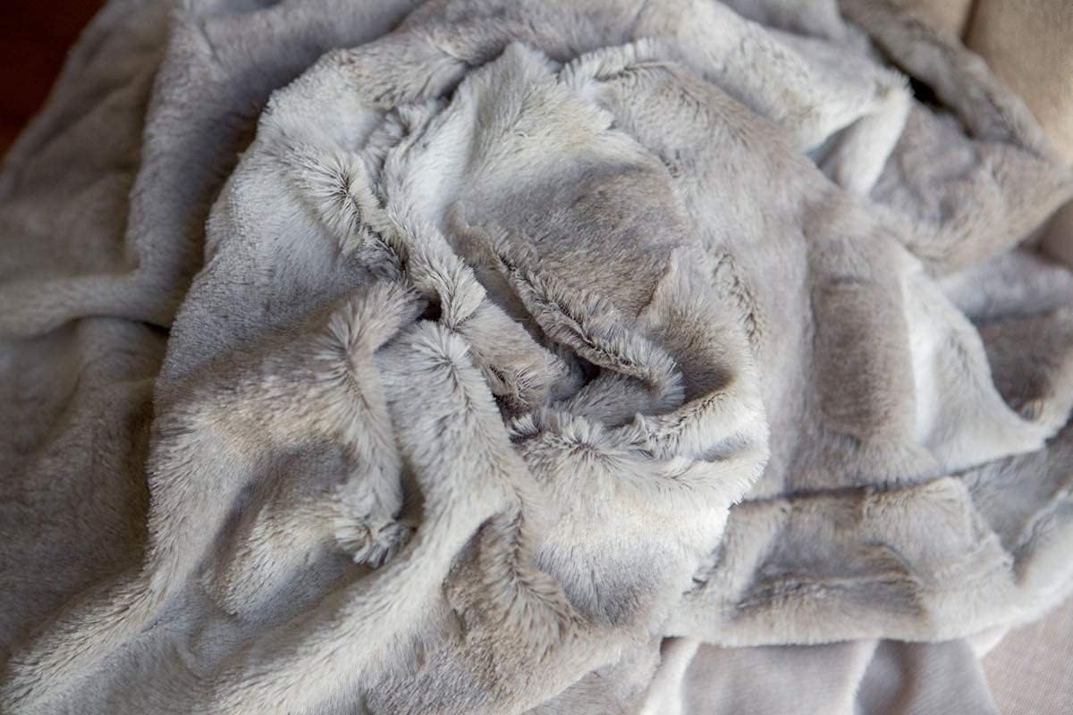• PREMIUM QUALITY - 50" x 60" faux-fur and micro mink wrap blanket is made from high quality 220 GSM plush royal faux fur on front side and a solid colored soft gray micro mink on the other. The varied gray tones of the blanket can blend with most home décor styles, and can be used in any room