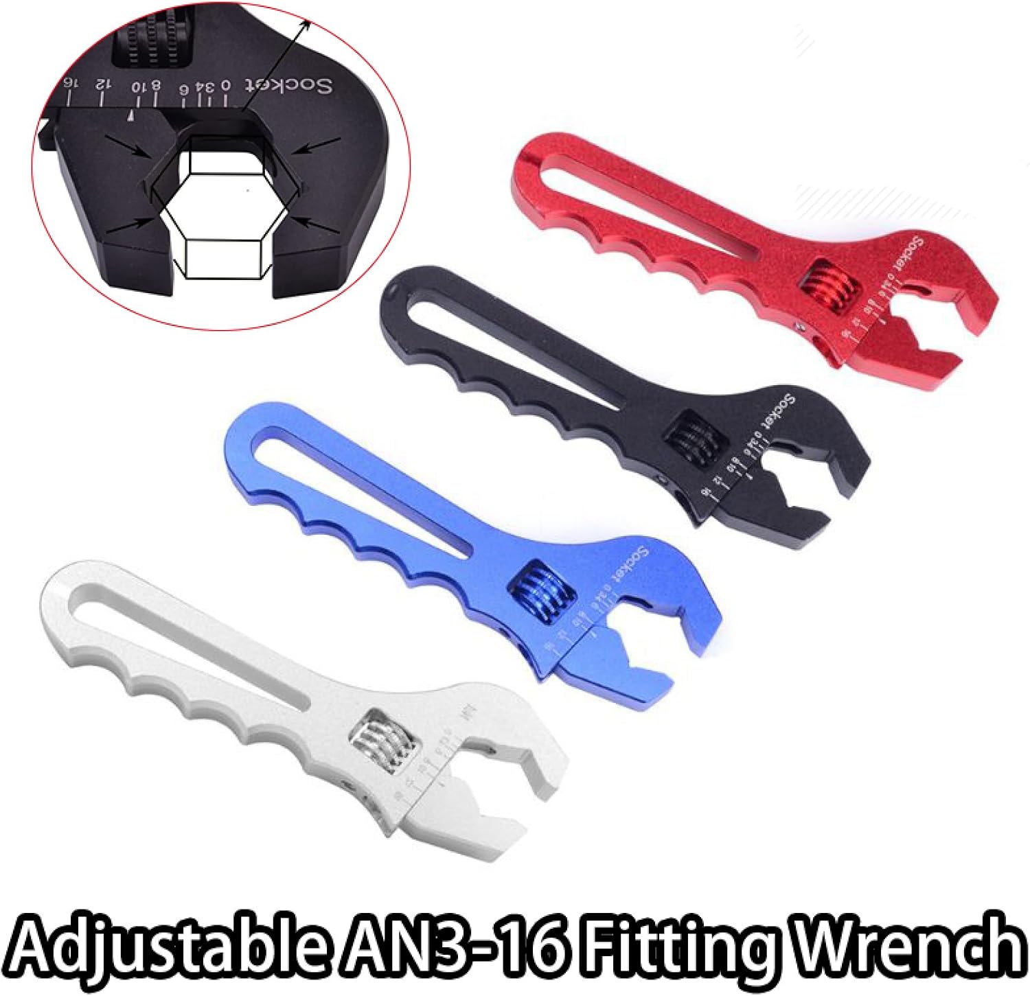 Features:Adjustable wrench works with any shape of nuts or bolts.It is compatible used for all kind of bolts & nuts, The wrench size can be extended from AN3-16.Particulary it is convinient to work in narrow spaces due to it is ergonomically designed.The handle of the wrench is a curve design, thus preventing the wrench from falling off the wrench.Adjustable Wrench is completely versatile and can be used for DIY,industrial or professinal use.You can tight up any screw with this adjustable wrench.You also can use this wrench for housework.Multi-function Wrench - They are the solution to your problems with taps, valves, pipes and wheels. Effective, practical, light weight system.Always use the best quality materials - the use of aluminum material handling, high hardness, beautiful and durable.Easy to Use - Curve design anti-skid handle grip comfortable. Easy to carry. Self-adjusting technology for nuts and bolts of all sizes and shapes. Specification:Type: Multifunction Wrench SpannerLength: 185mm/ 7inMaterial: Aluminum alloyAvailavle Sizes: AN3-16Color: Silver,Black,Blue,RedPackage includes:1 × Adjustable Spanner
