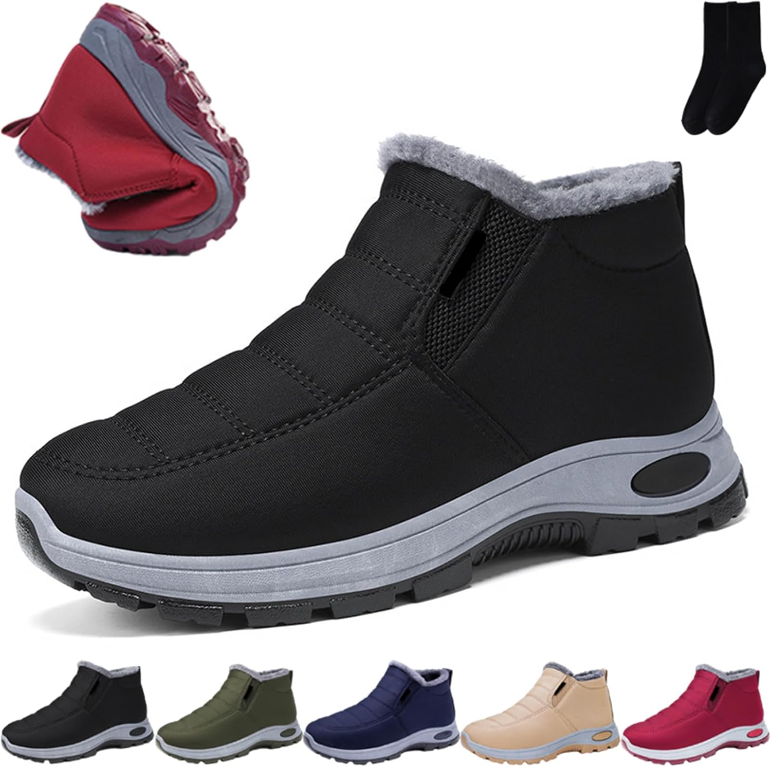Women's Winter Warm Slip On Fur Lined Orthopedic Boots, Walking Snow Boots Women Outdoor Comfortable Non-Slip Ankle Booties, Ladies Anti-Slip Thermal Sneakers Specifications:Product Name: Women's Winter Warm Slip On Fur Lined Orthopedic BootsColors: Black, Red, Dark Green, Beige, Navy BlueSizes: 4, 5, 6, 7, 8, 9, 10, 11, 12, 13, 14, 15Suitable Seasons: Spring, Autumn, Winter Package Includes:1 * Women's Winter Warm Slip On Fur Lined Orthopedic Boots1 * Socks
